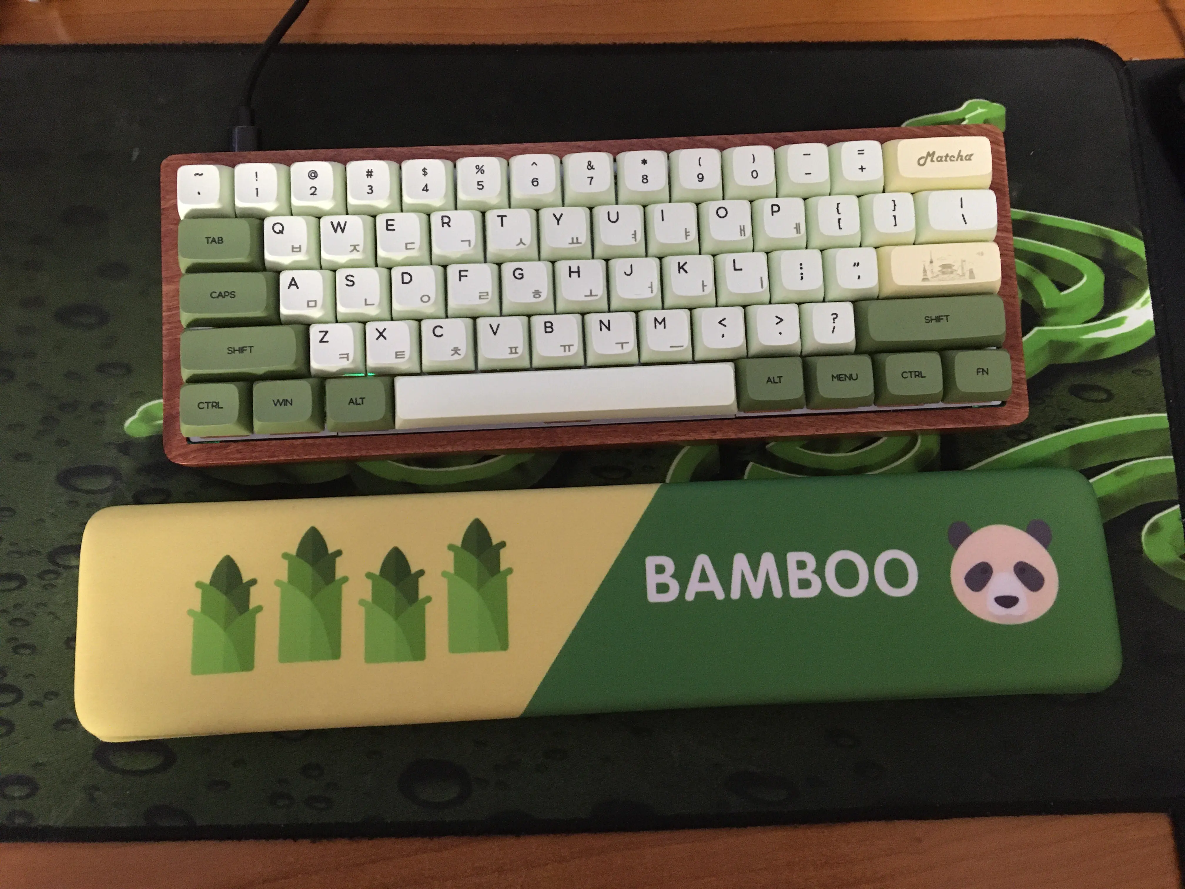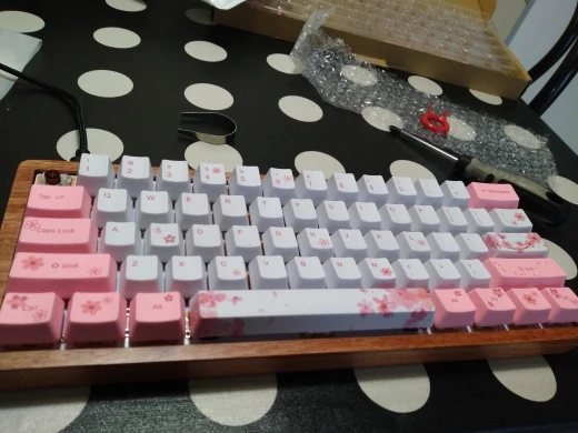 Доставка в мой мухожопск за 6(!) дней. + : Стабы смазаны(офк не идеально,но и так сойдет). Особо не дребезжат, кроме пробела. Деревянный кейс очень приятный,монолитный,можете забыть о вобблах и скручивании как на пластике,дереву чисто пох. Ножки цепкие,не скользит вообще. Качество сборки норм. - : Все-же дребезжит пробел. Без подставки под запястье было бы довольно неудобно пользоваться клавой из-за высоты деревянного кейса. При подключении компьютер не распозновал клавиатуру, было пофикшено зажатием esc+caps перед подключением клавы. Мега ужасный софт, из-за которого дефолтные функции приходится настраивать костыльными методами. Оченть стоит проклеить шумку, в углубления в дереве(там рандомное углубление по центру корпуса,я хз зачем) В целом, клавиатура стоит тех 6.5к деревянных(за деревянную клаву,ха) что я отдал. В дальнейшем буду из клавы дорабатывать полноценный кастом. (да,треймаунт, но акустика дерева перекрывает для меня этот минус) пс. блютусом не пользовался