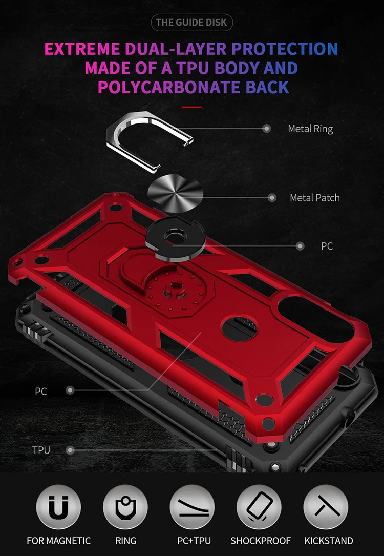 Чехол-накладка для Xiaomi Redmi Note 7, 7A, 8, 9, 8A, K20, 8T, 9T, A3 Play, CC9E, CC9 SE Lite, Pro, с кольцом-подставкой