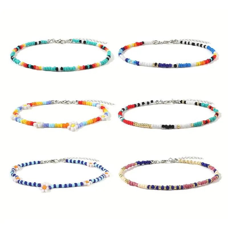 Ножной браслет с бусинами для женщин и девушек, креативный Модный цветочный декор, пляжный анклет в богемном стиле, Изящные Ювелирные изделия, аксессуары для женщин и девушек, 1 шт.