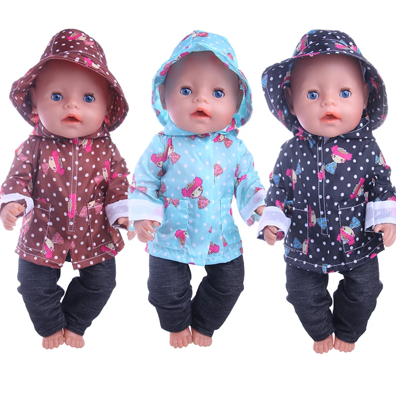 3 шт.компл., костюм-дождевик, милая кукольная одежда для маленьких девочек, 18 дюймов, американская кукла для девочек и 43 см, Новорожденный ребенок, наше поколение