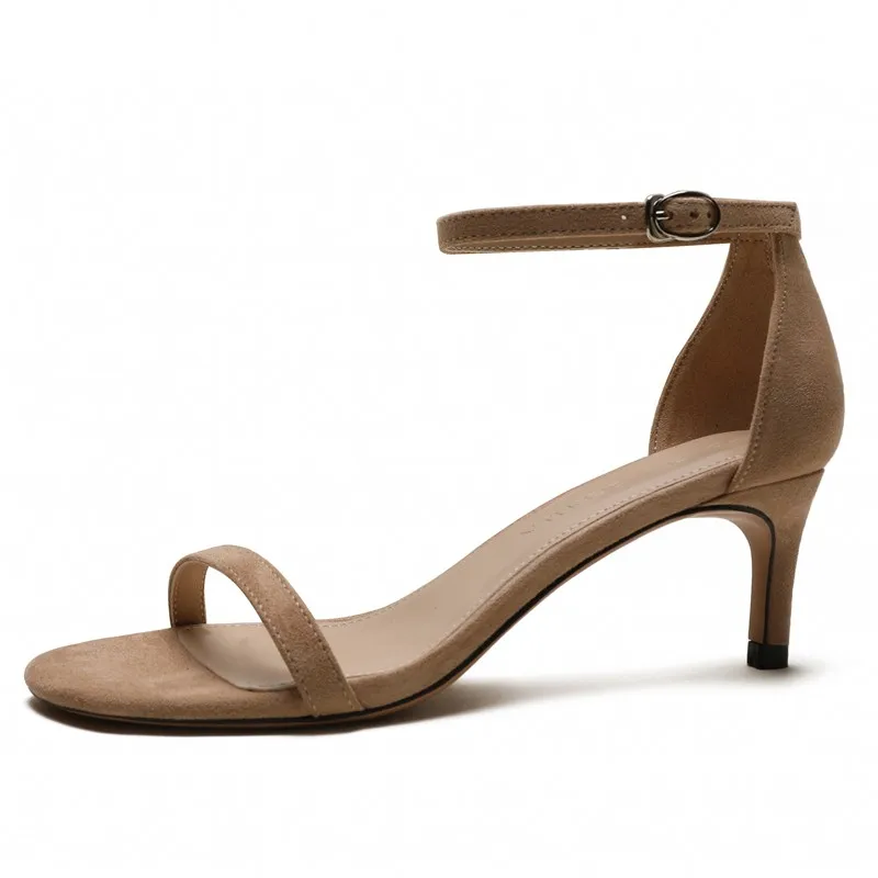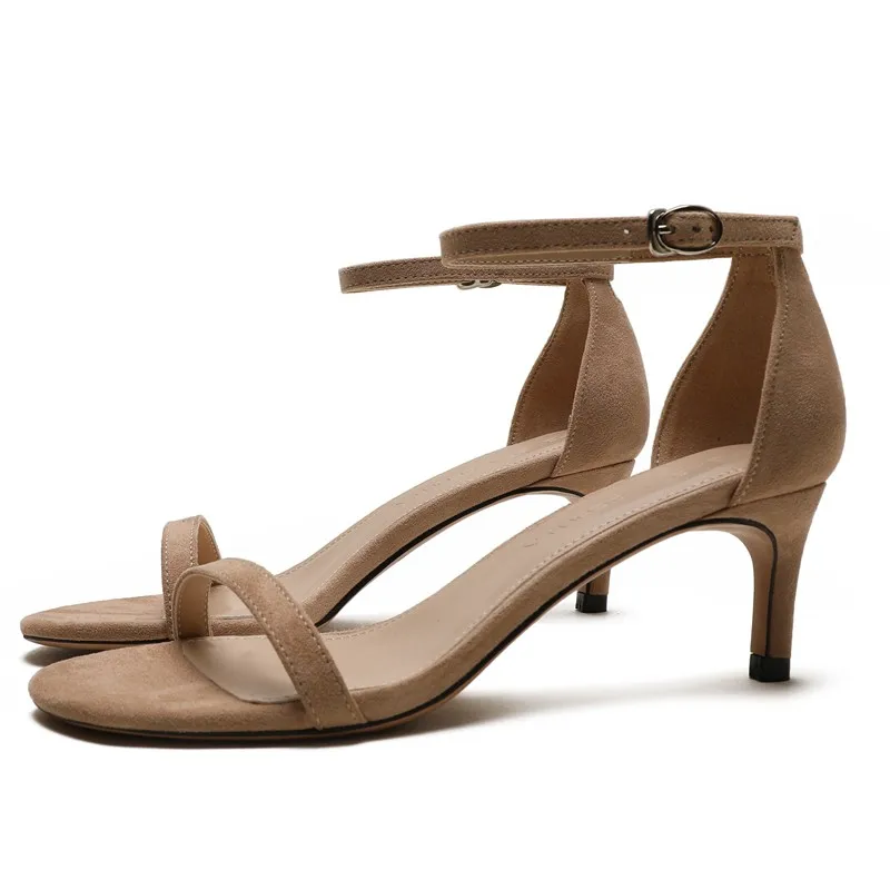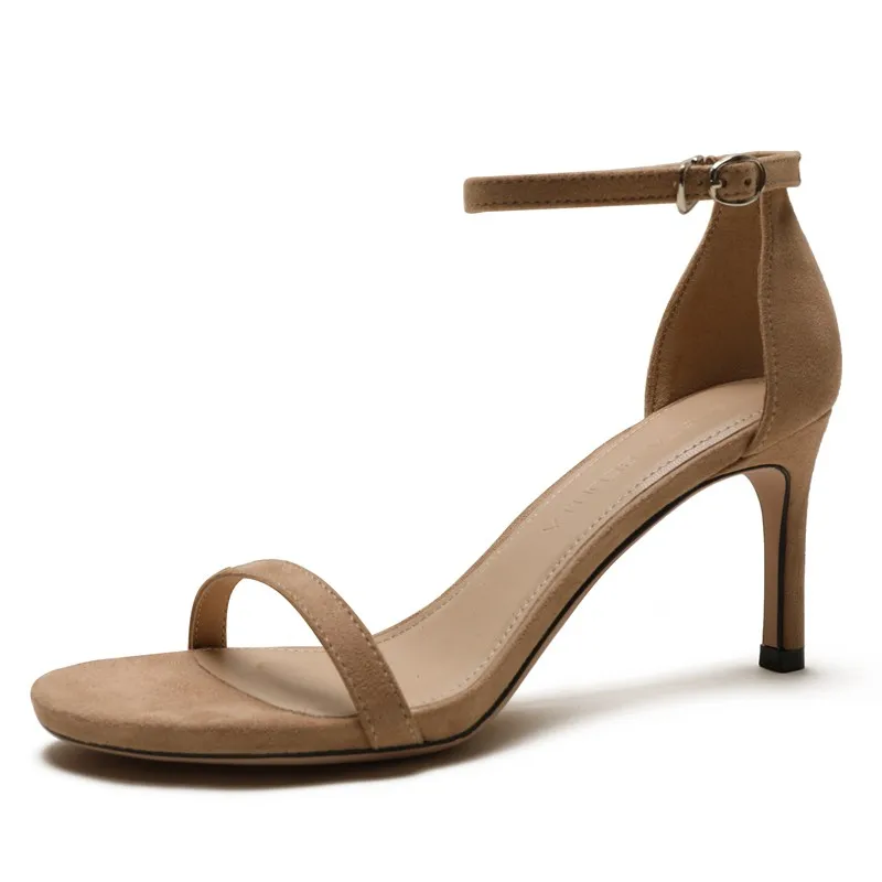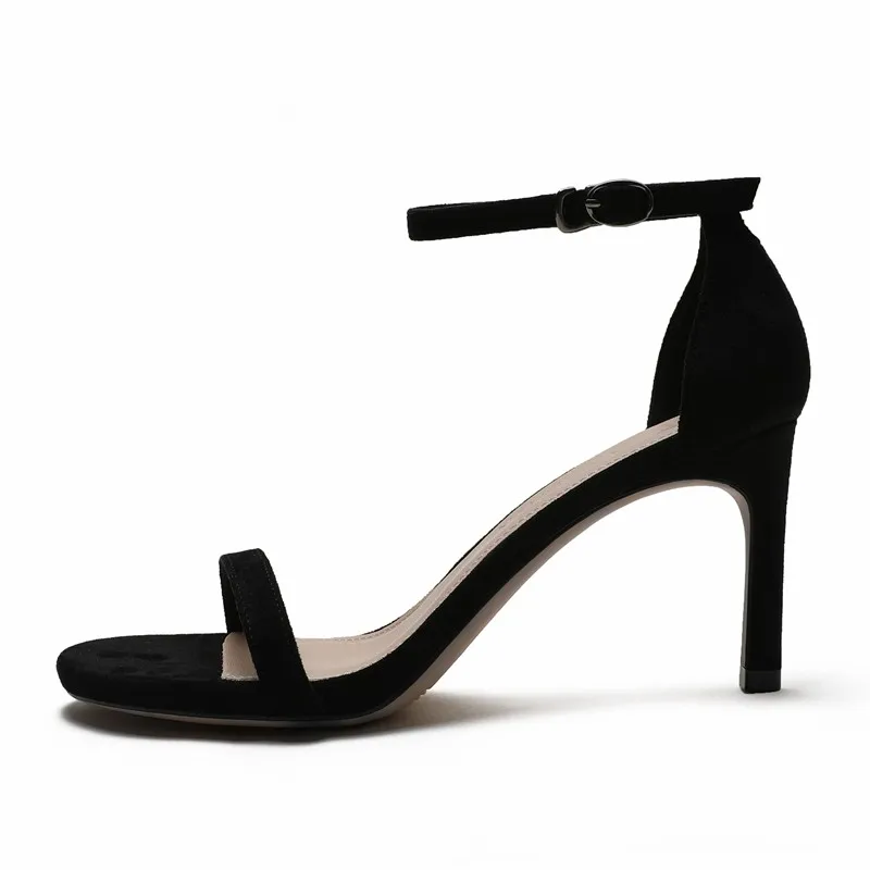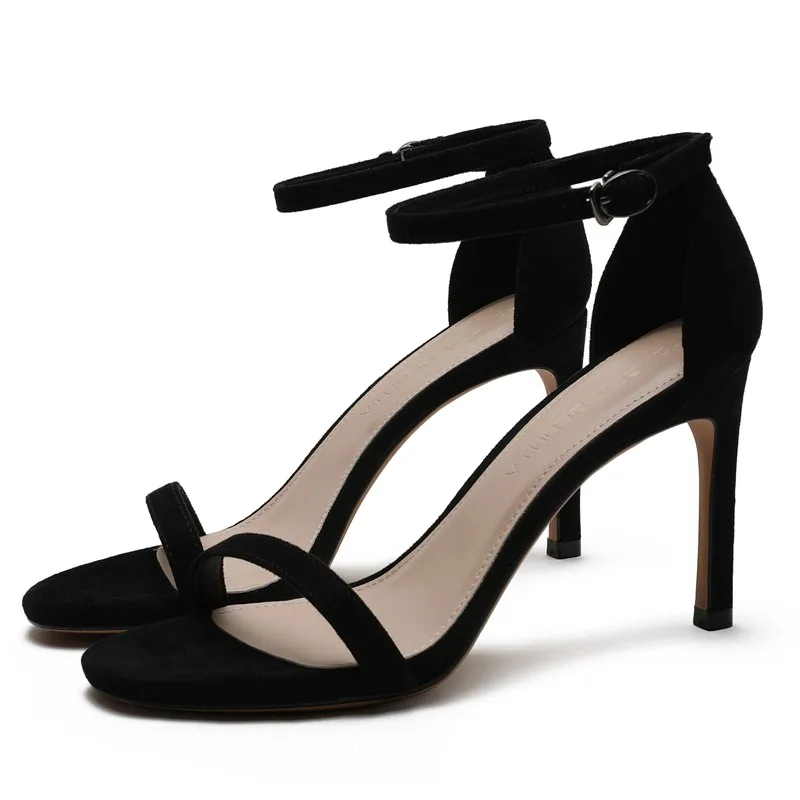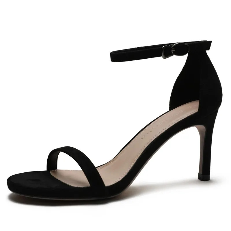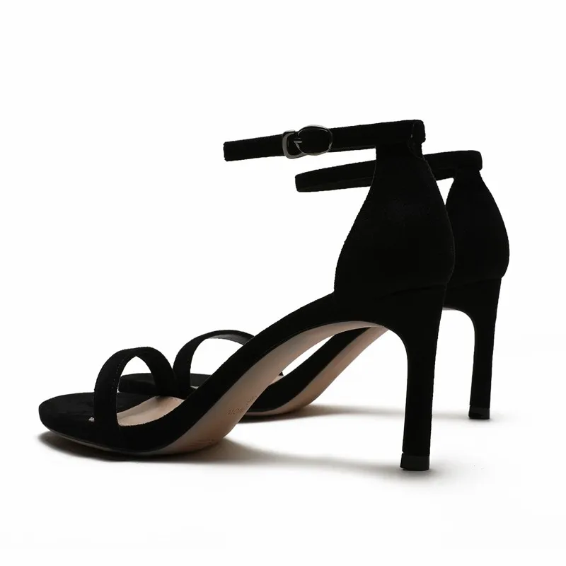 С ремешком сзади, с узким ремешком; Женские босоножки в сдержанном стиле; Элегантные летние женские туфли для выпускного вечера на высоком тонком каблуке; Большие Размеры Женская замшевая обувь, обувь для детей, кожаная обувь M0067