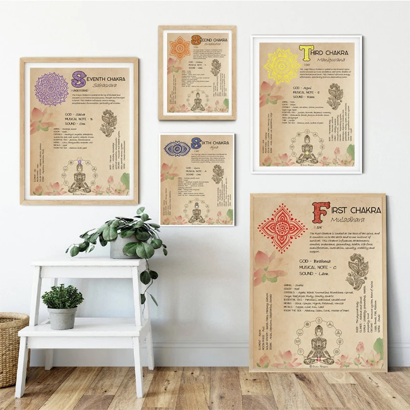 Чакры, Йога, принты, винтажная Книга теней, плакат, религиозная религия, Настенная живопись на холсте, картины, декор для гостиной
