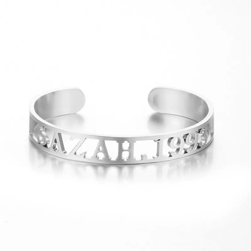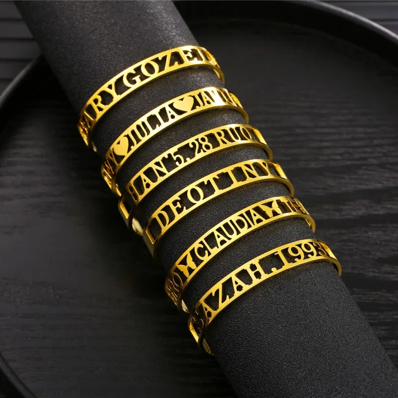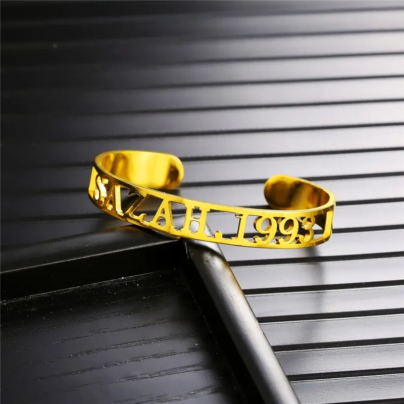 Индивидуальные браслеты с именем для мужчин, полые браслеты из нержавеющей стали, индивидуальное имя, идентификатор манжеты, браслет с табличкой, можно регулировать