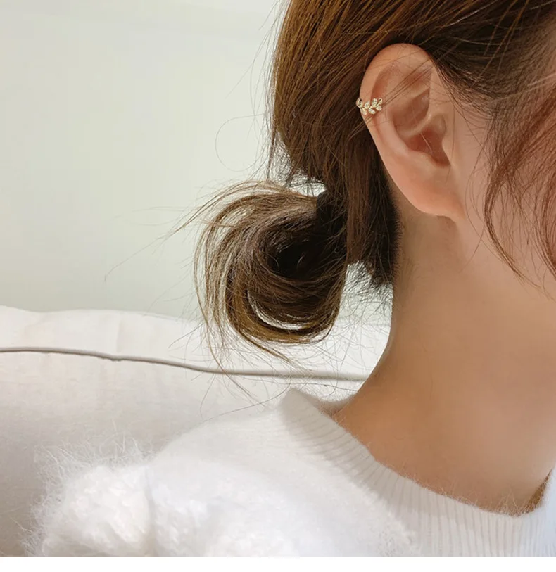 Зажимы для ушей женские металлические, милые клипсы с декором лист и цирконом, не имитация пирсинга, ювелирные изделия для ушей, 2020
