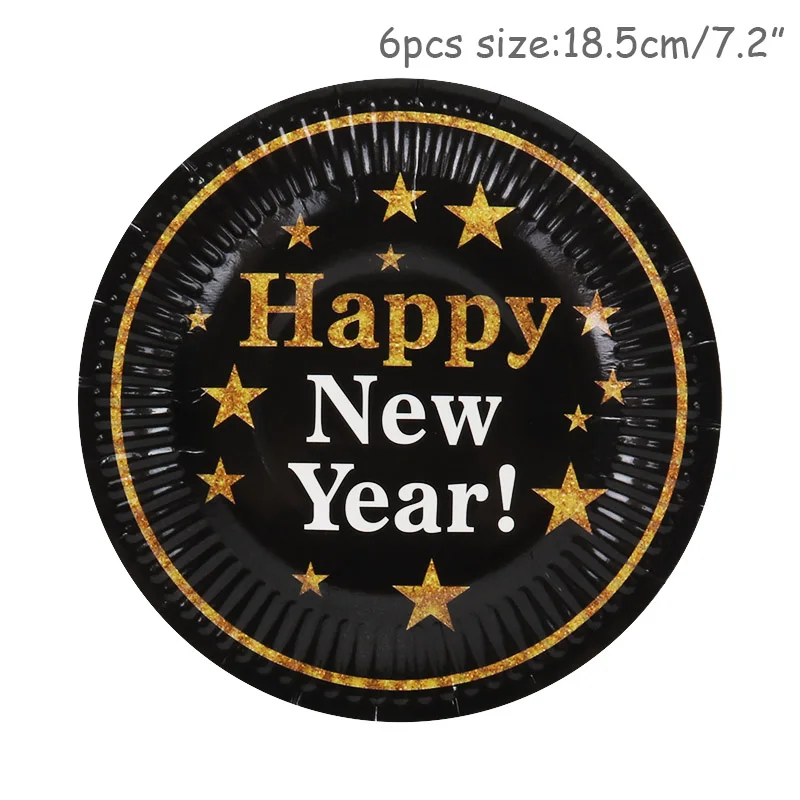 Новогоднее украшение 2022 г., одноразовая посуда, черные и золотые ...