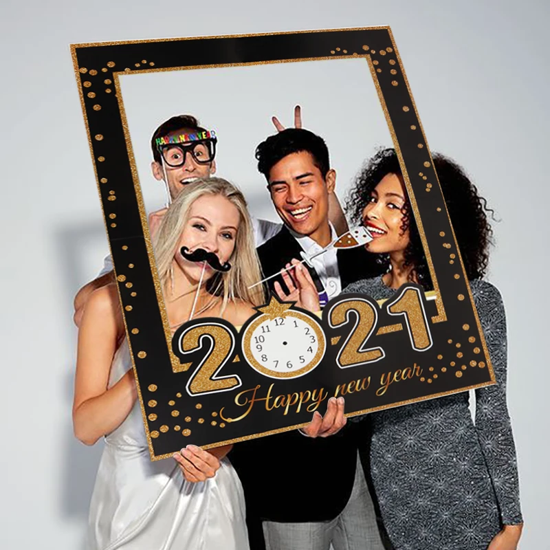 2021 с новым годом фото стенд рамка реквизит золотые черные бумажны...