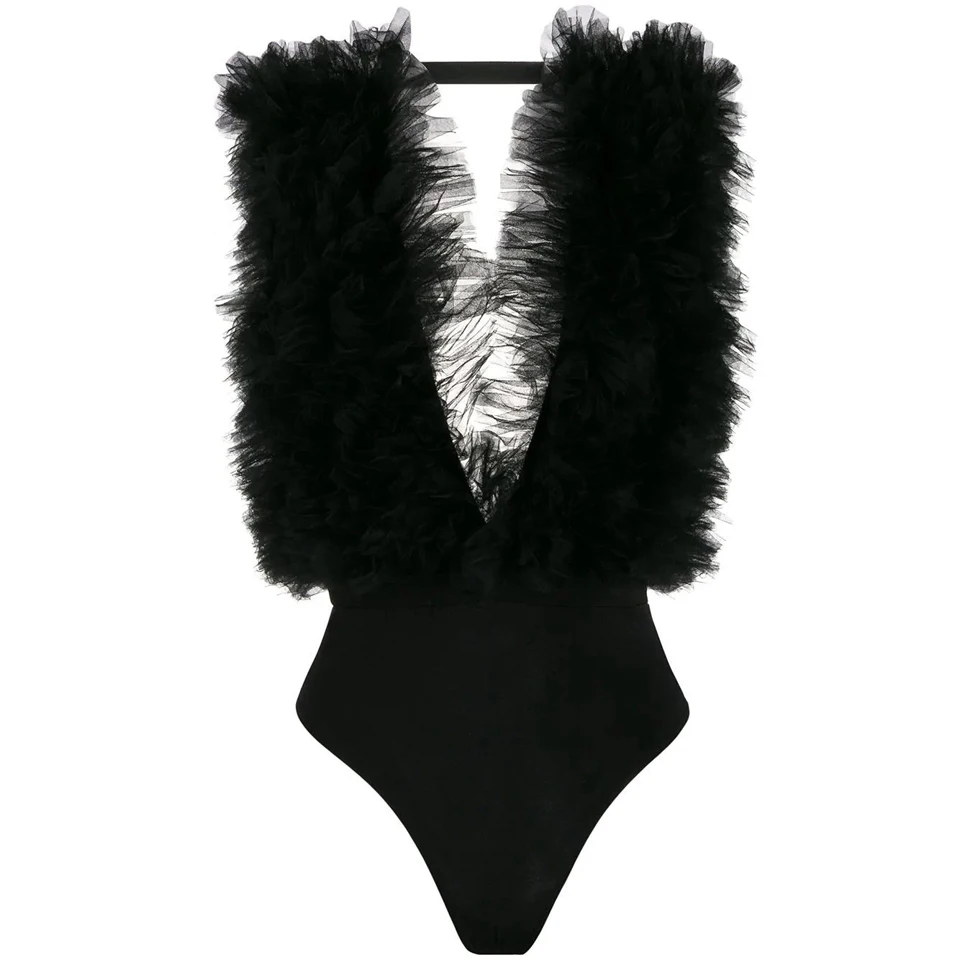 Шикарные сексуальные черные тюлевые боди, изготовленные на заказ, с глубоким V-образным вырезом, женские фатиновые брюки для плявечерние