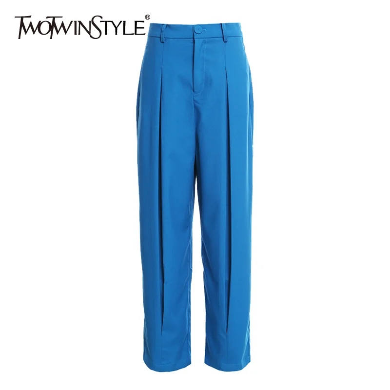 Женские винтажные Брюки с рюшами TWOTWINSTYLE, повседневные свободные широкие брюки с высокой талией и карманами на лето 2020