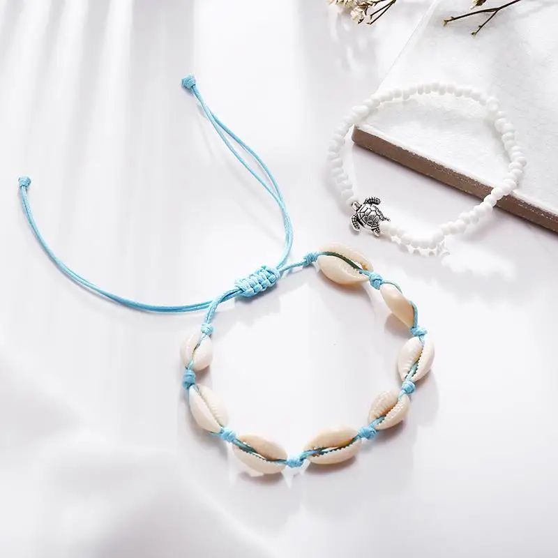 2 шт винтажный пляжный раковины ножной браслет с черепахой голубая ...