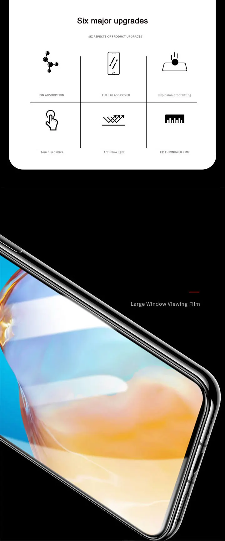Вся поверхность стекла прозрачная, а задняя сторона покрыта прочным силиконовым клеем для легкой установки.
