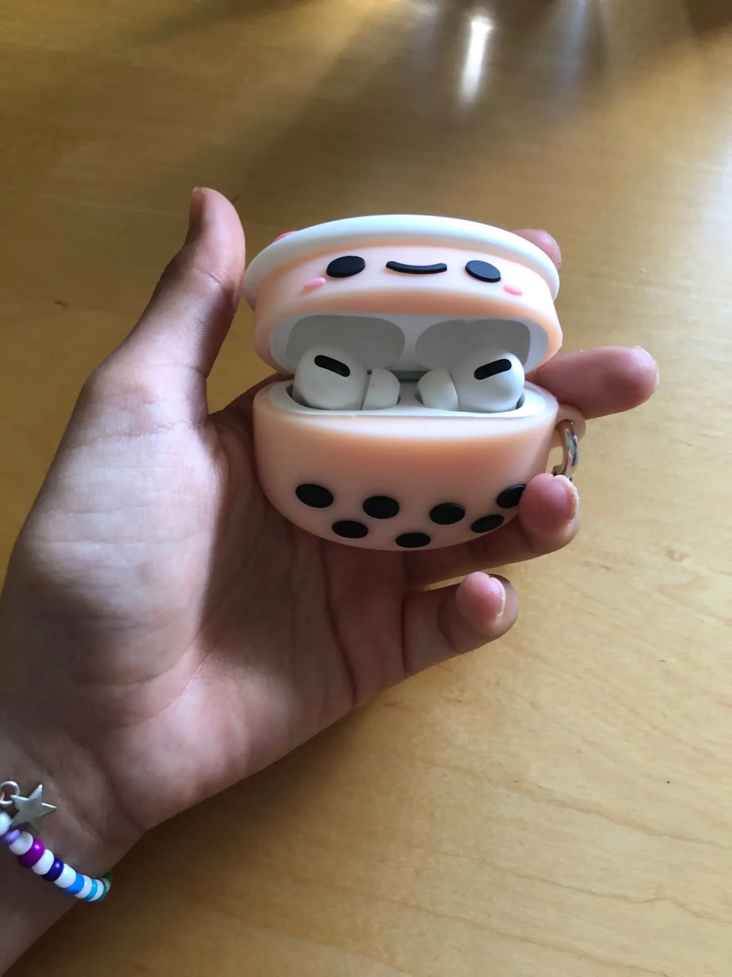 Это было действительно мило, и цвета были действительно красивыми, но в тот день, когда я получил его, моя собака жевала его, поэтому в конце концов я ничего не получил. Это не продавец вина, что это моя вина не держать его подальше от моей собаки, но да. Также я получил галстук для волос в подарок с корпусом airpod, который был милым :)