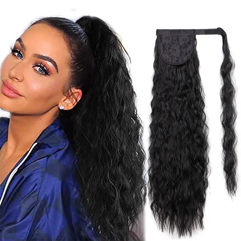 Курчавые прямые длинные накладные волосы для конского хвоста 24 дюй...