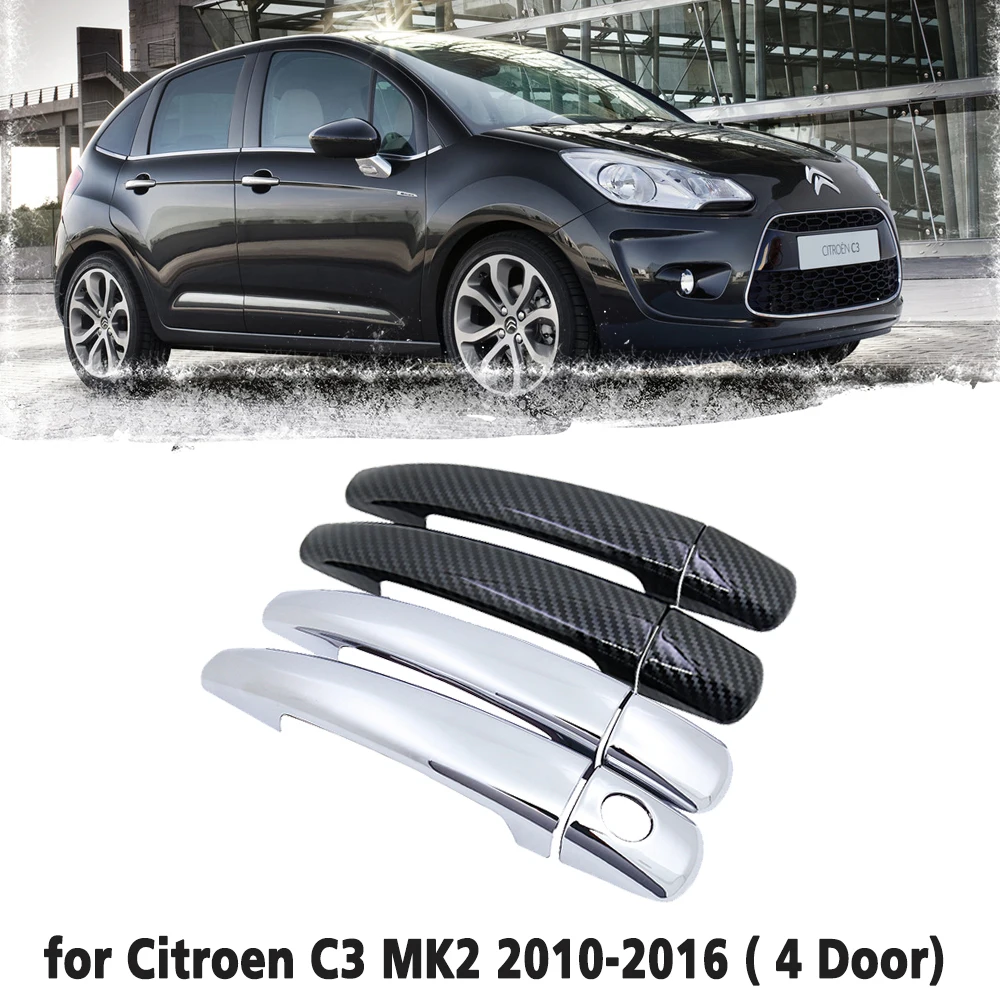 Черная автомобильная ручка из углеродного волокна или хромированная крышка дверных ручек из АБС-пластика для Citroen C3 Mk2 2010 2016 автомобильные аксессуары автостайлинг 2011