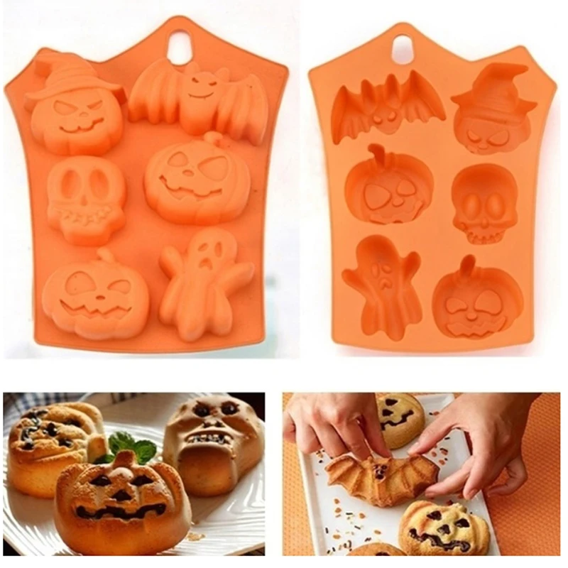 Силиконовая форма для торта в стиле Хэллоуина, 6 полостей, тыква, призрачная летучая мышь форма, печенье, шоколад, формы для пирожных сделай сам, инструменты для выпечки