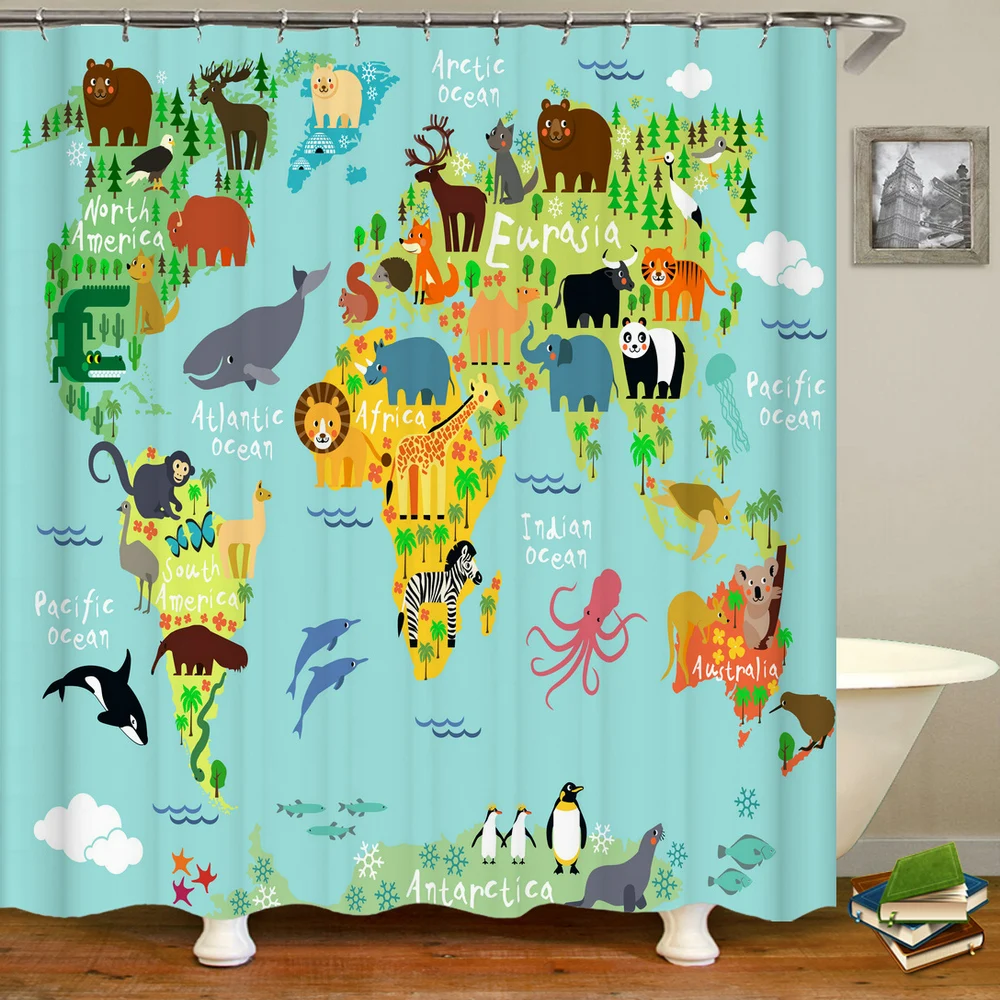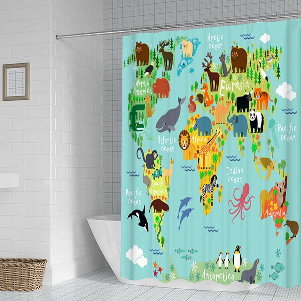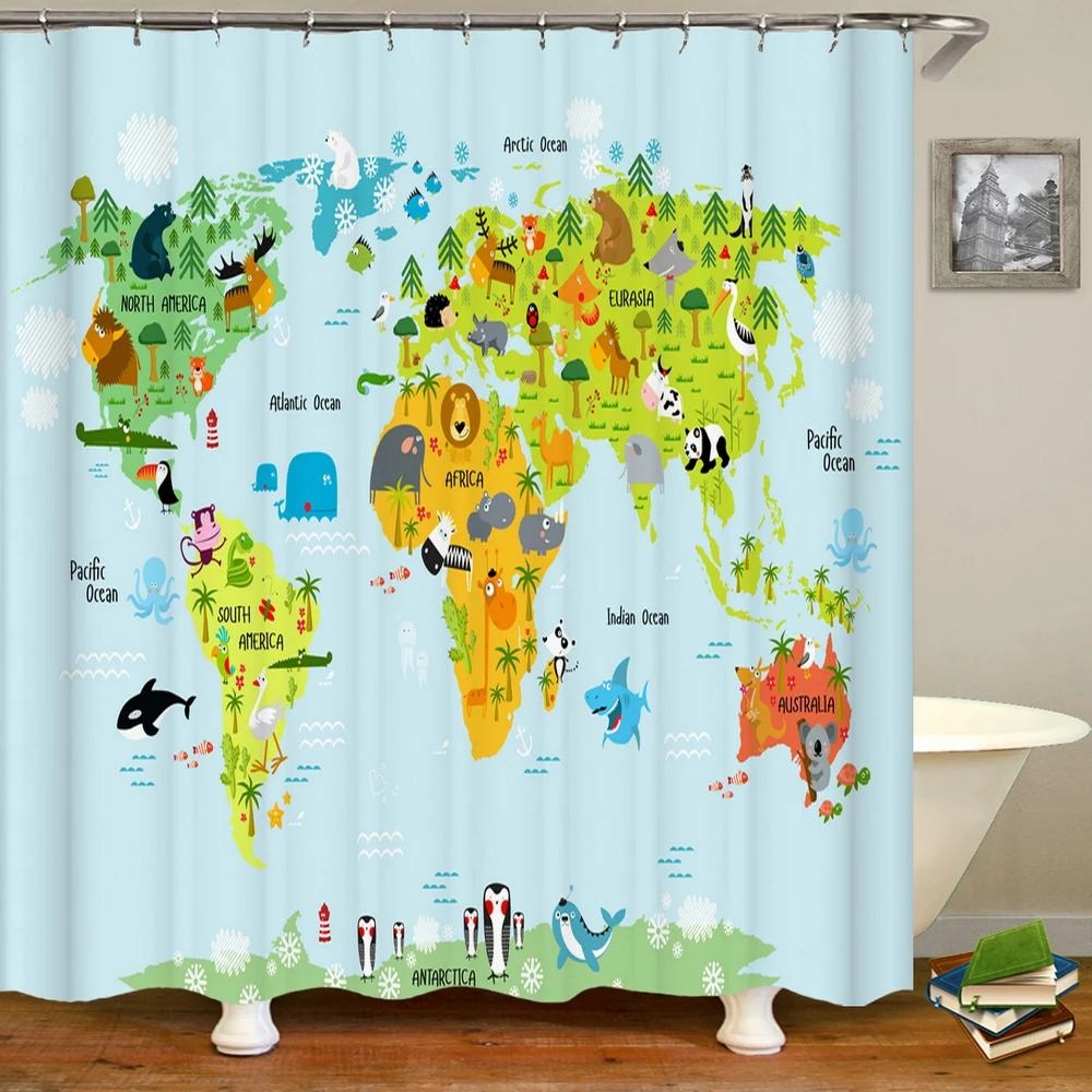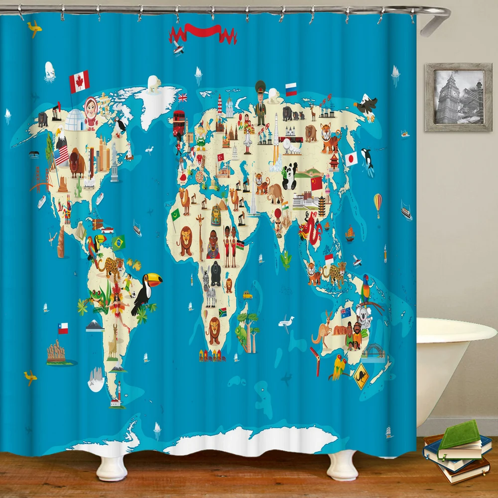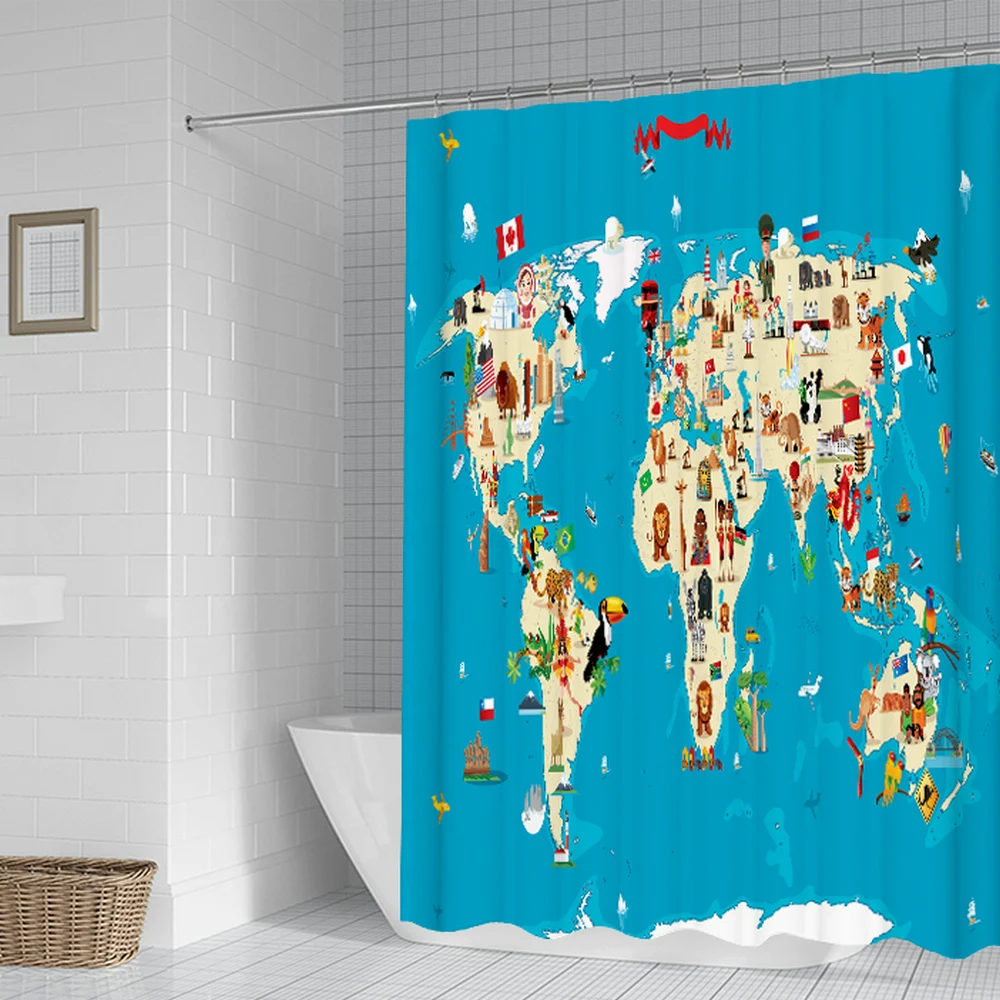 2 шт.компл., ретро-занавеска для душа с картой мира в Европе, Детск...