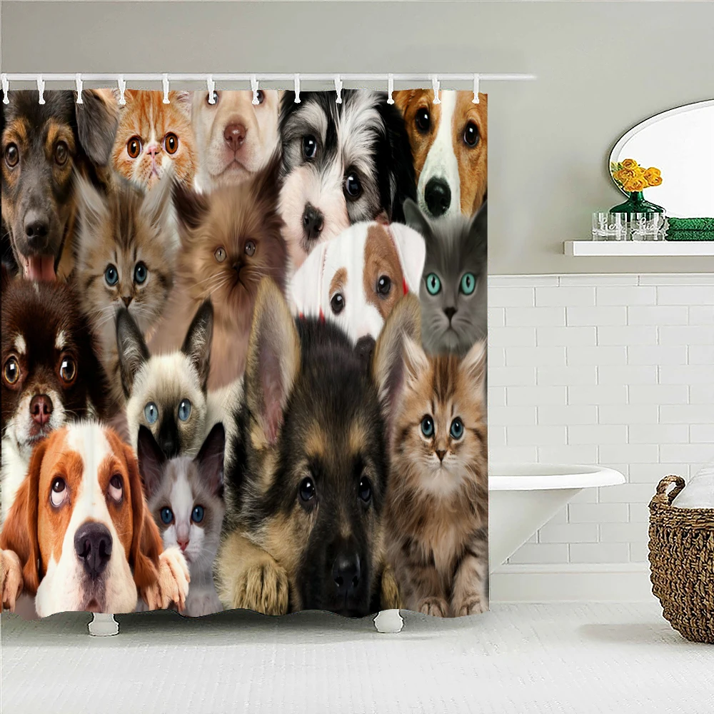 Занавеска для ванной с изображением Льва, тигра, кота, собаки