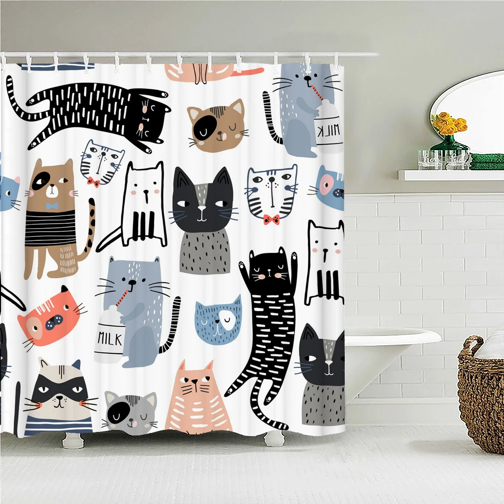 Занавеска для душа с мультяшным забавным котом и милыми животными, ...