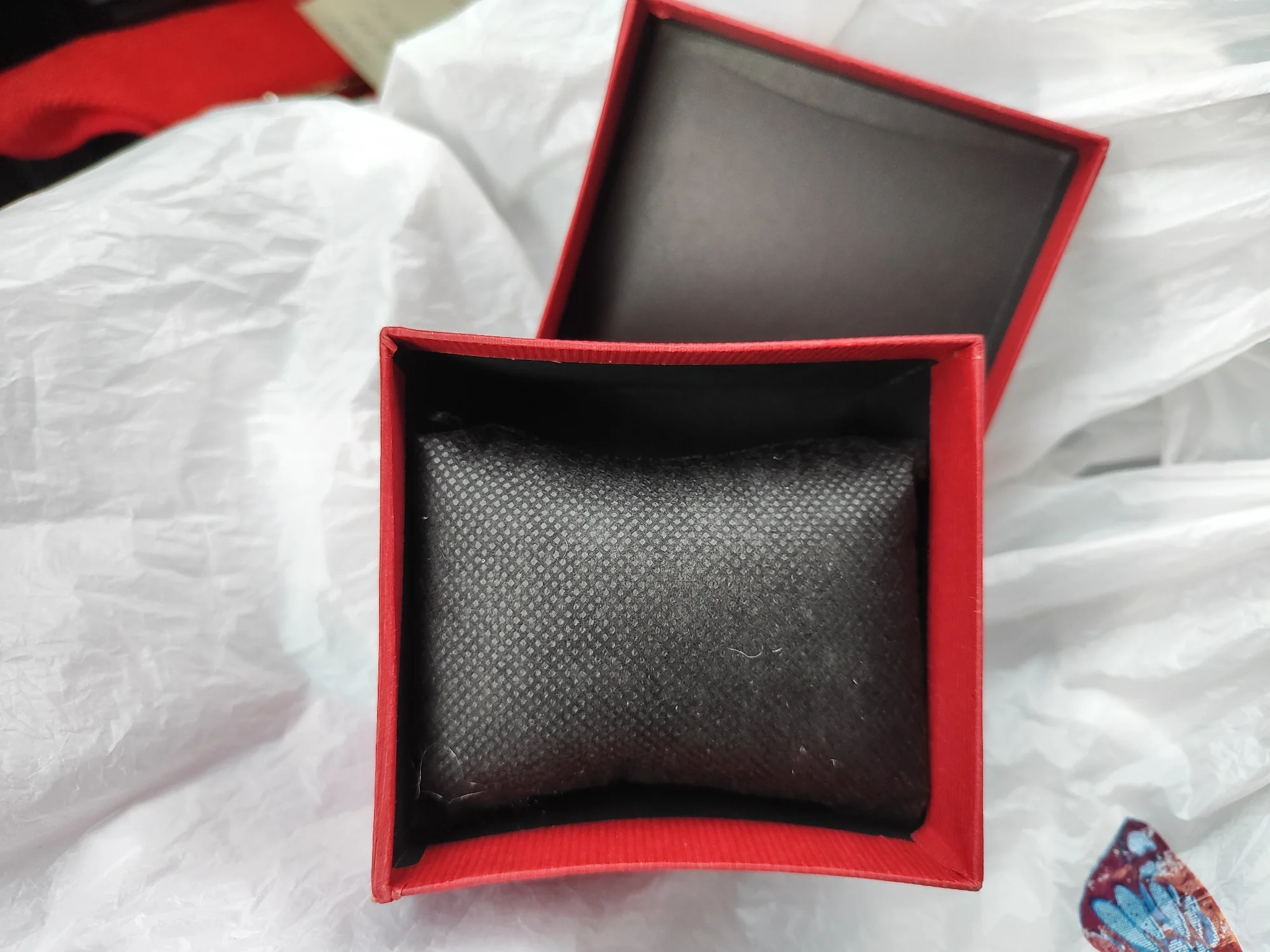 коробку покупала в подарок к часам. коробку продавец не упаковал просто кинул в целлофановый мешочек. кроме того на коробке по краям повреждения, и она так помята сильно, что подарить а ней что- то невозможно. только на выброс. На фото коробка и подушечка- красного цвета, а подушечку положили черного цвета. Блин гробик....