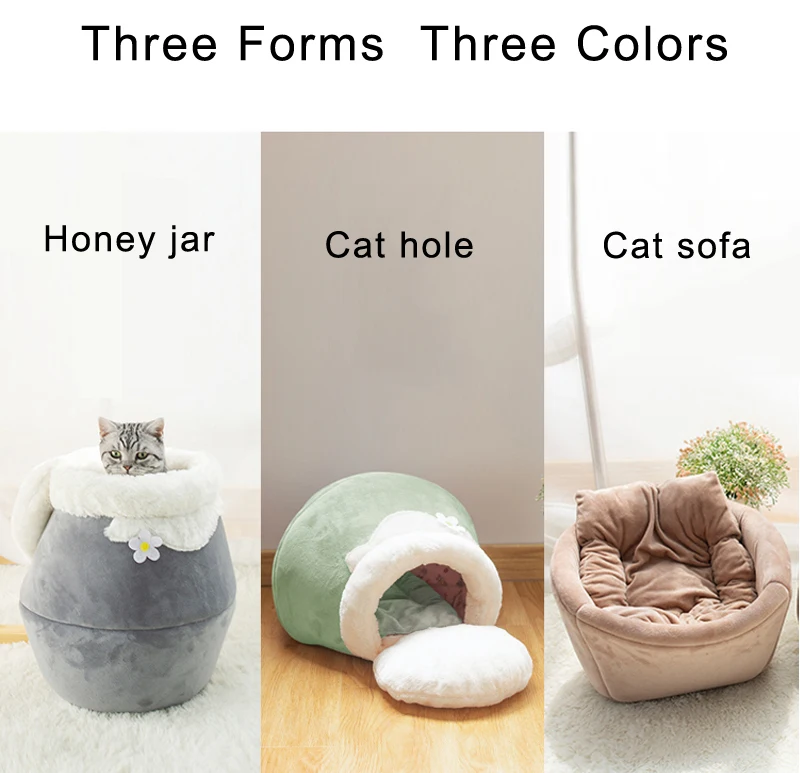 Зимняя теплая плюшевая мягкая портативная складная кровать для кошек, милый домик для кошек, спальный мешок, подушка, утолщенная кровать для домашних животных, гнездо для кошек, котят