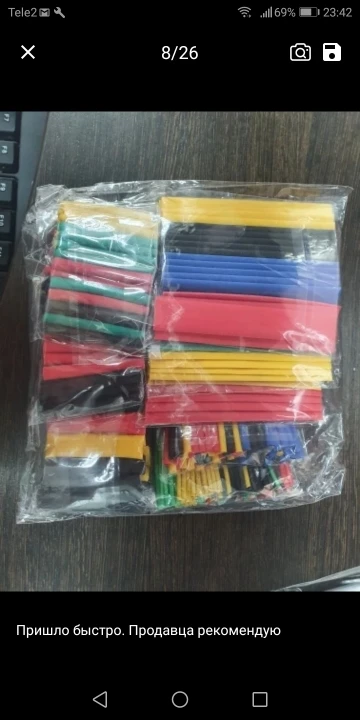 Термоусадки как на фото. В том же количестве. Приехало относительно быстро. Что еще желать то.