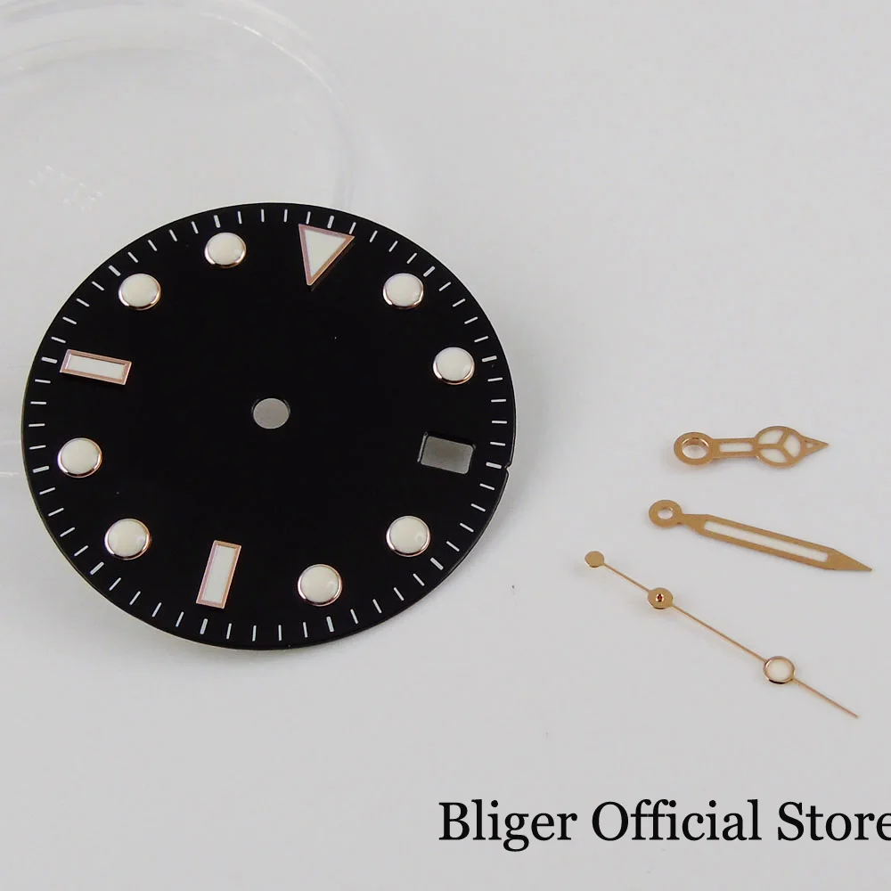 Подходит для NH35 28,5 мм Move men t черный мужской циферблат розовое золото отметки Дата Окно