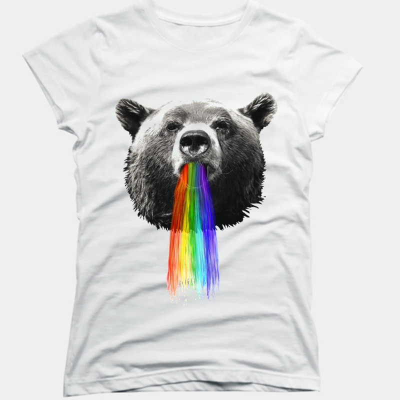 Женская футболка с изображением радужного медведя, летняя, свободна...