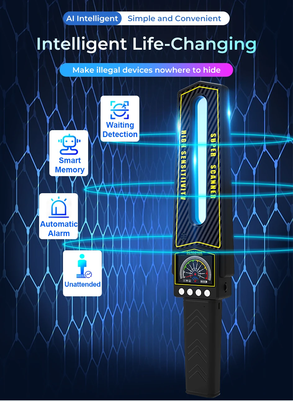 Этот анти-детектор камеры с использованием современных чипов военного качества имеет мощную лазерную технологию, беспроводной сигнал и технологию обработки сигнала магнитного поля. С функцией автоматического обнаружения, вы можете завершить широкий спектр обнаружения в течение нескольких минут, устраняя все подозрительные риски, это может эффективно предотвратить подслушивание, видеозапись, мошеннические и защитить личные данные конфиденциальности и конфиденциальность информации