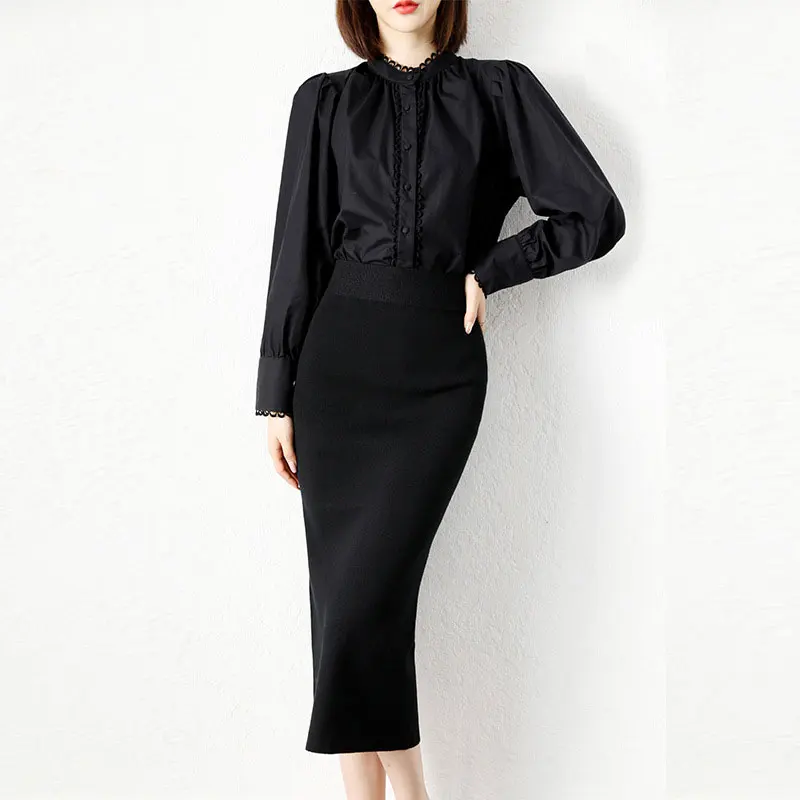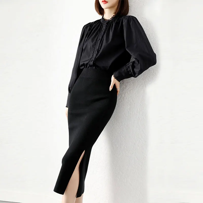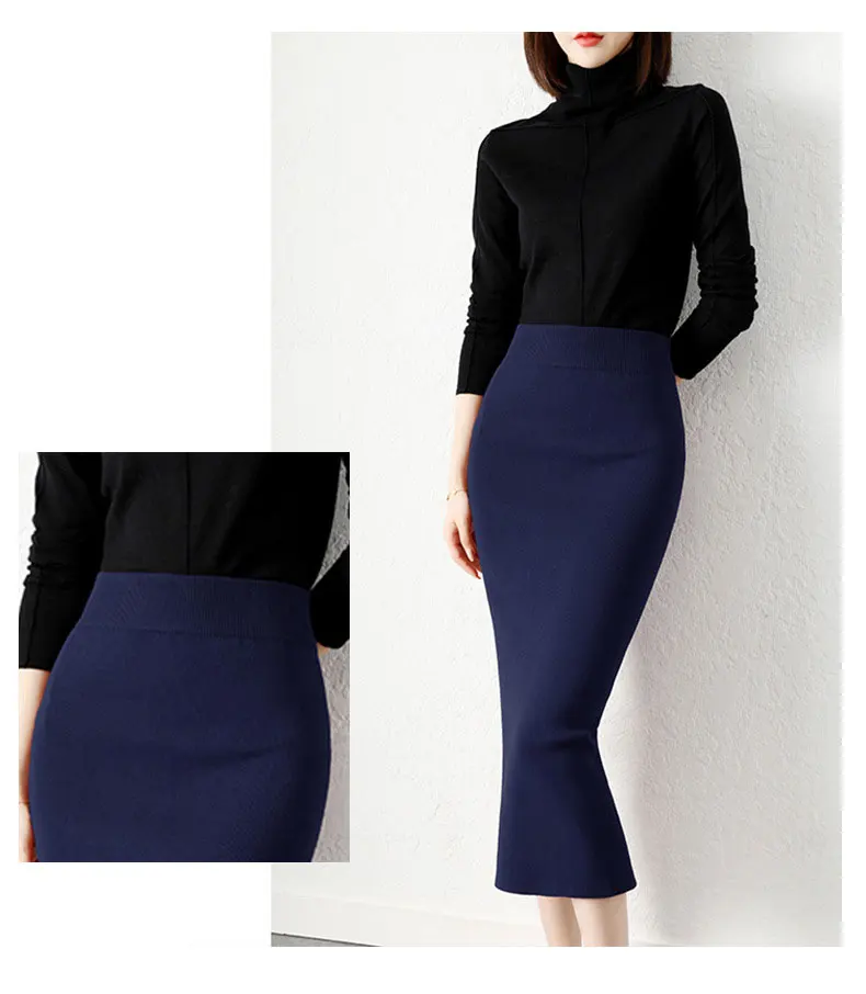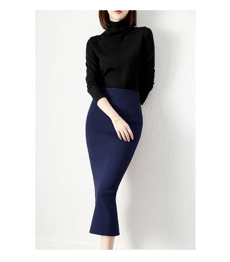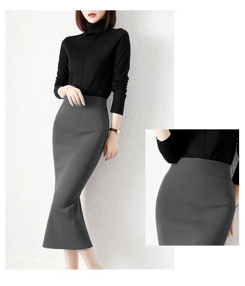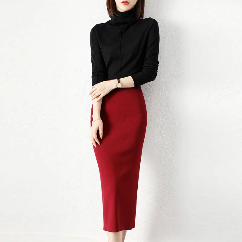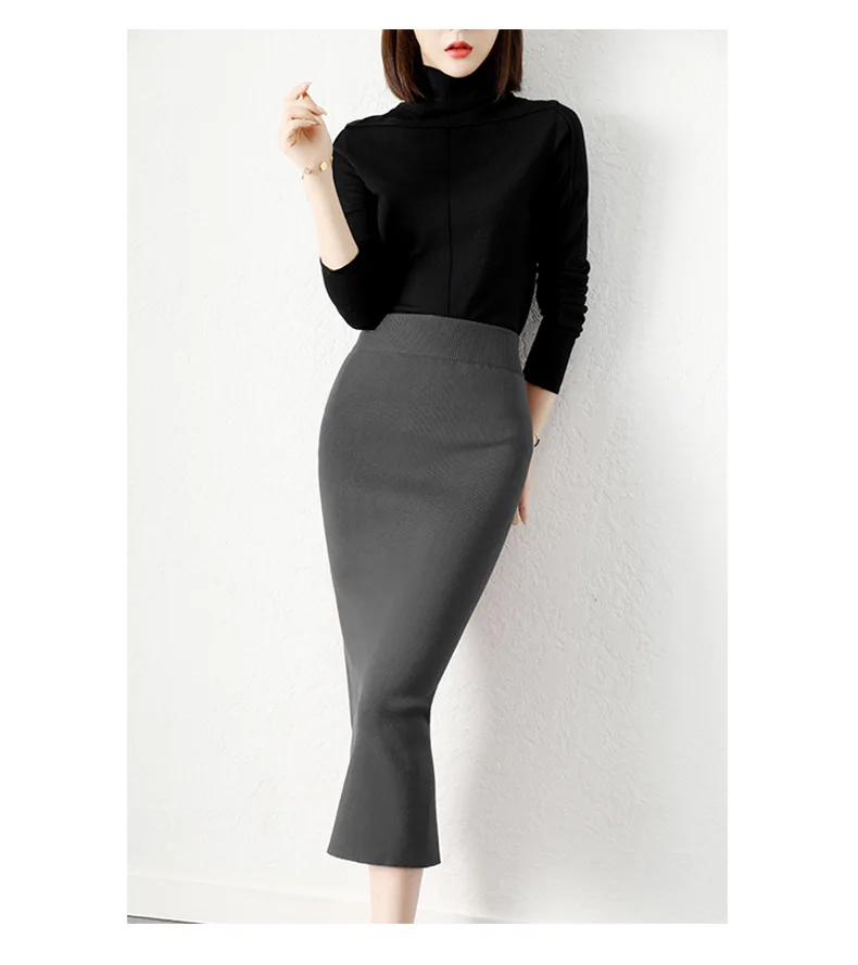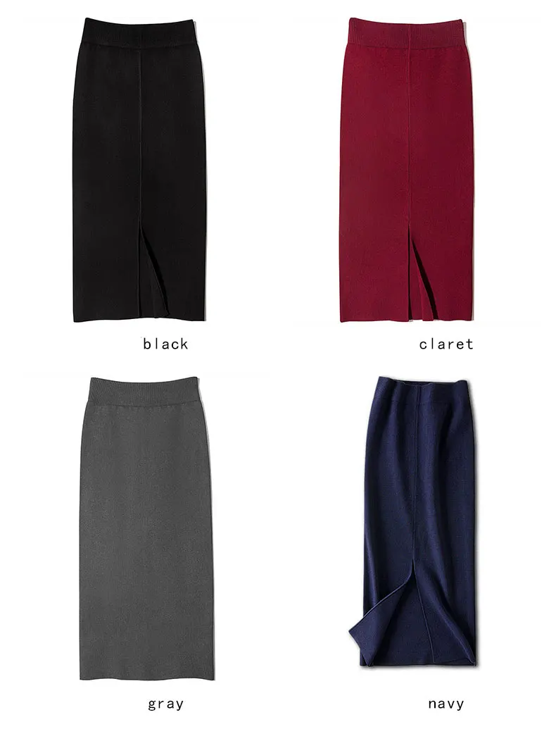 Женская юбка с высокой талией, Однотонная юбка с разрезом, осень 2022