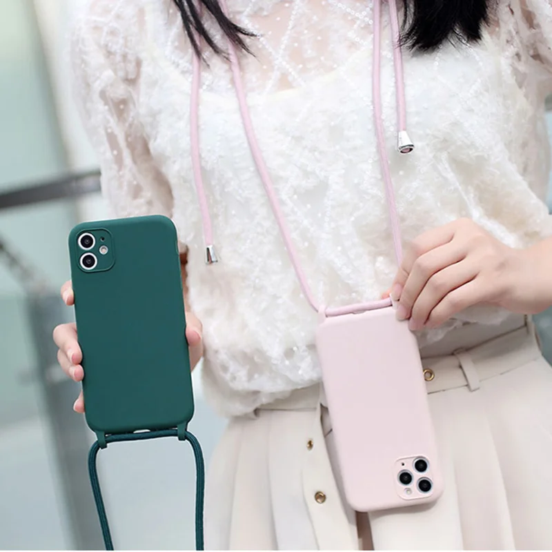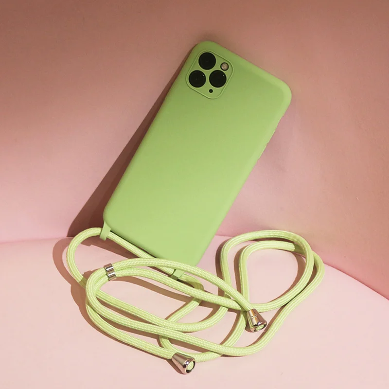 Новый мягкий силиконовый чехол с карамельным ремешком для iphone 6 6S 7 8 Plus SE 2 2020 11 Pro XS MAX X XR, держатель для ожерелья через плечо, задняя крышка