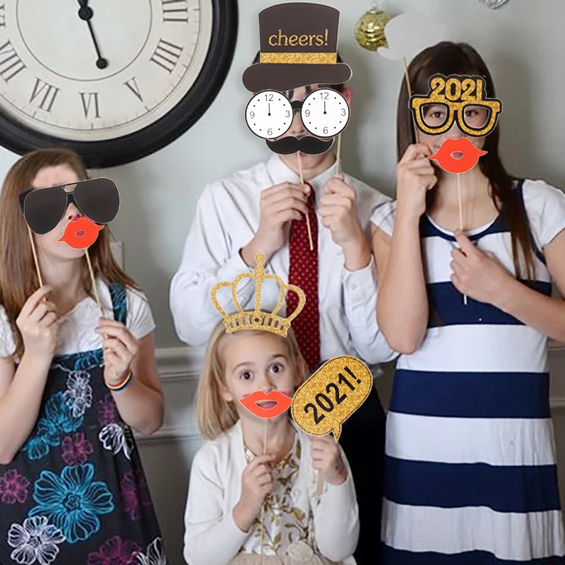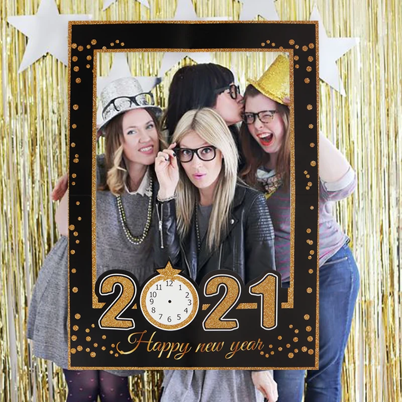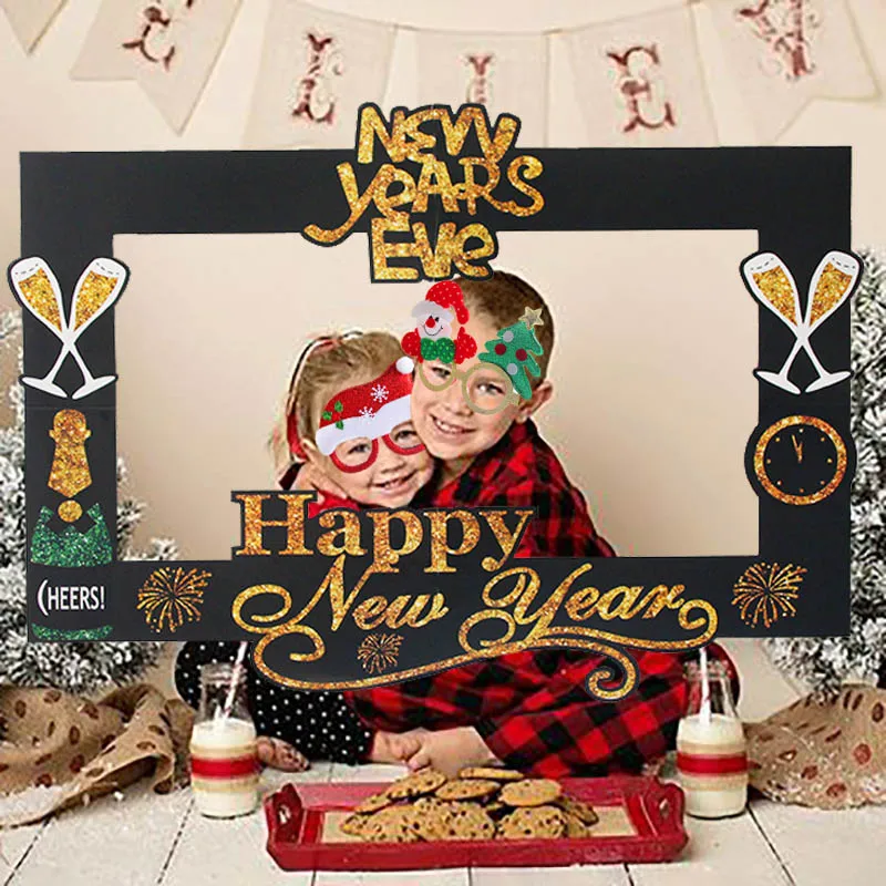 2021 с новым годом фото стенд рамка реквизит золотые черные бумажные очки фотостудия новогодние вечерние товары детские сувениры
