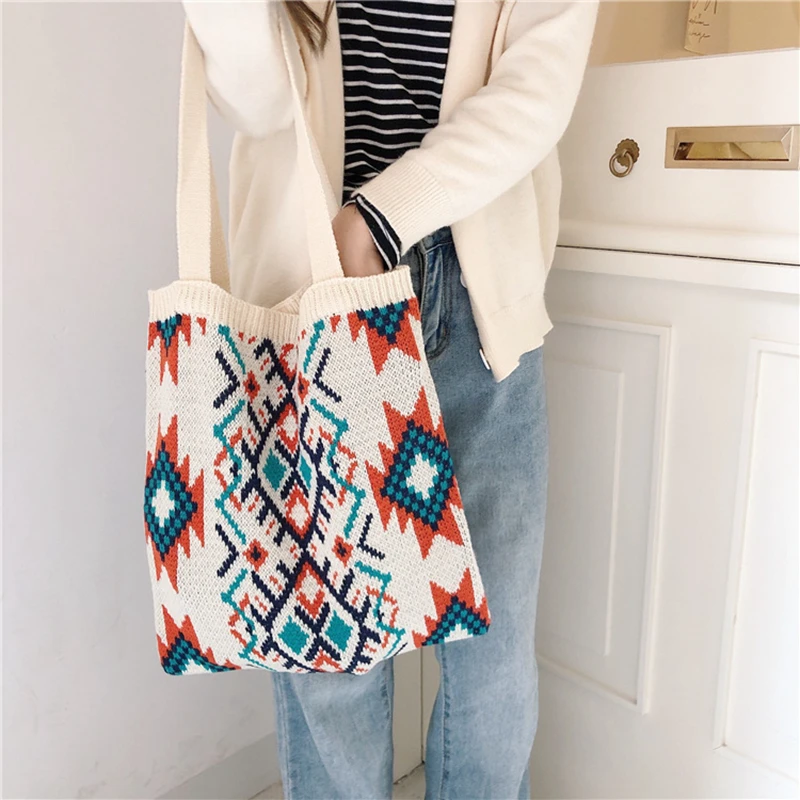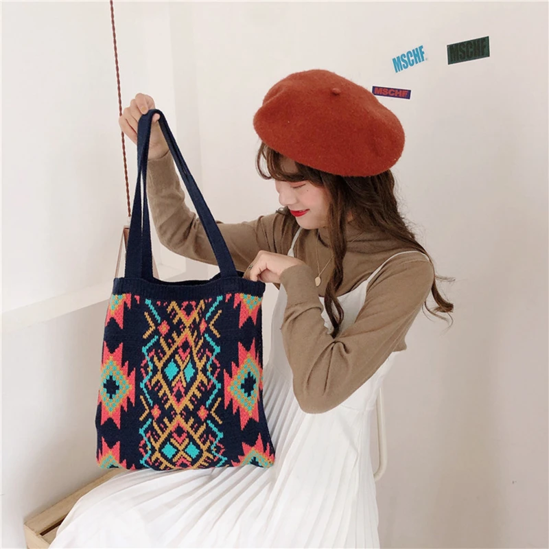 Классическая парусиновая сумка для девочек, шерстяная вязаная сумка из хлопчатобумажной ткани, женская сумка на плечо, милая Студенческая сумка, женская сумка-мессенджер