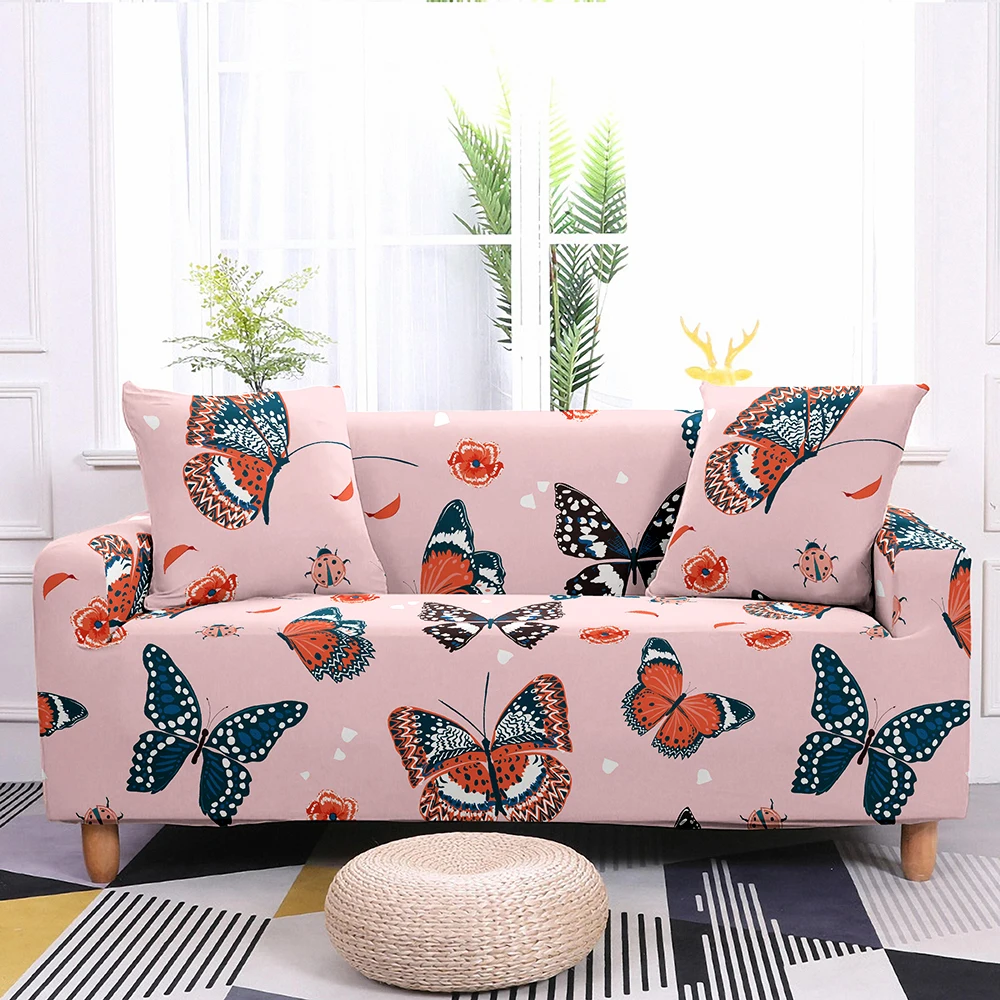 Разноцветный эластичный чехол для дивана 3D в виде бабочки, чехол для дивана в гостиную, домашний защитный чехол из спандекса L-образной формы, нужно купить 2 шт.