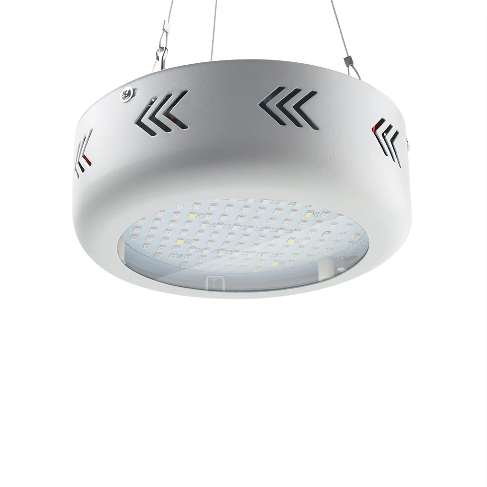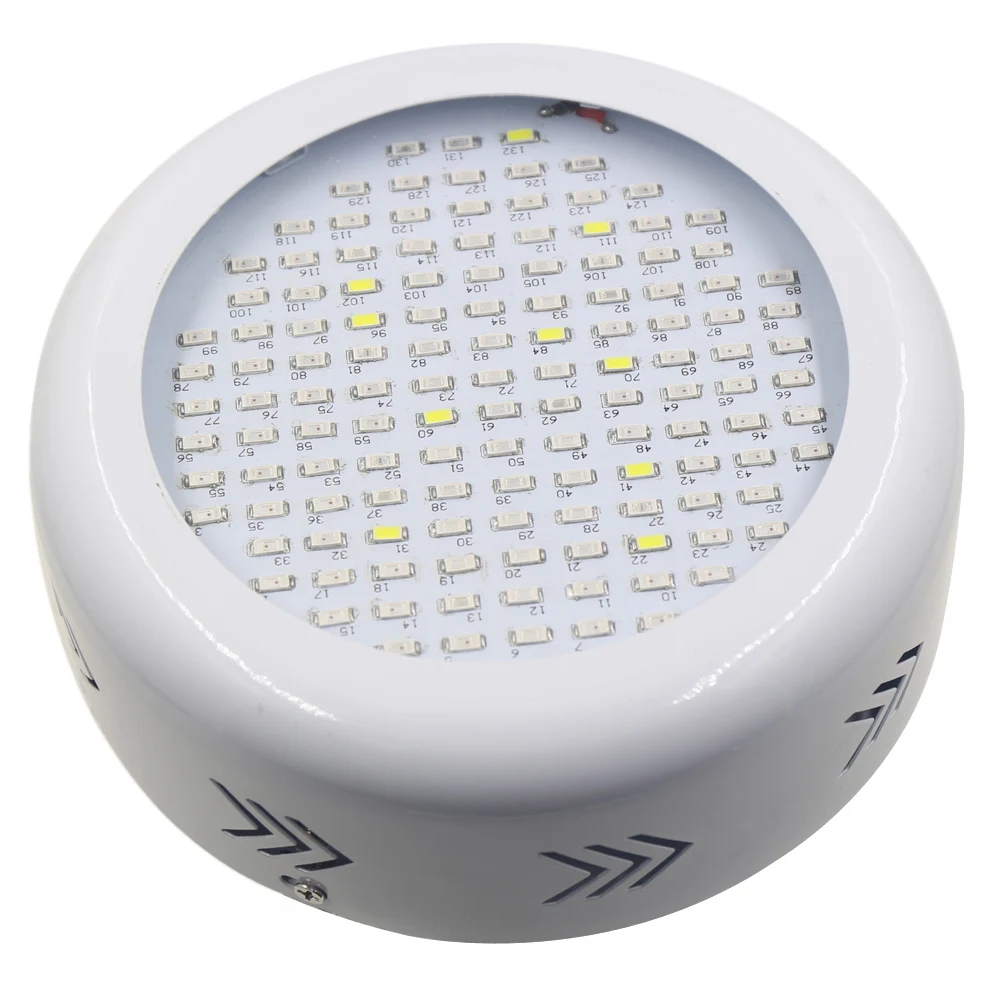 Характеристики:Мощность: 130 Вт (потребляет около 45 Вт)Напряжение: AC85-265VКоличество СВЕТОДИОДНЫЙ: 132 шт.Цвет светодиодов: 91Red:30 синий: 6IR:5UVРазмер (диаметр) * (высота): 175 мм * 65 мм