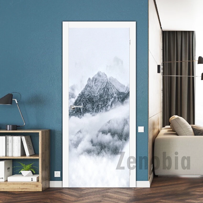 Облака Снежная серия гор 3D дверная наклейка модульная печать ПВХ водонепроницаемая настенная самоклеящаяся наклейка дверь украшение домашний дизайн