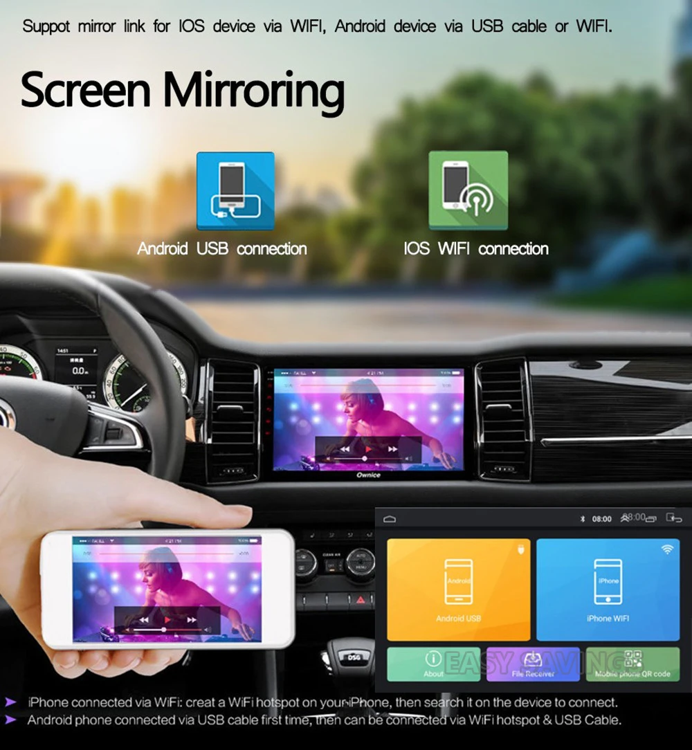Особенности:●HD 9 ''Авторадио mp5 плеер●Модернизированная двойная система зеркальной связи: IOS/Android mirror linkIOS односторонняя: IOS поддерживает одностороннюю проекцию мобильный телефон на машинуДвусторонняя связь Android: Android поддерживает двустороннее соединение мобильный телефон● Встроенная gps-навигация: пользователи могут приобрести напрямую в play store для автономной навигации. При подключении к Wi-Fi Google Maps можно использовать идеально, вы можете пойти куда угодно и никогда больше не заблудиться.● Встроенный Wi-Fi: Подключитесь к Wi-Fi, и вы обнаружите новый мир, самым удобным является онлайн-карта.●Камера заднего вида: необходимо выбрать камеру, автомобиль подключается к реверсу для автоматического переключения (требуется дополнительно)● Управление рулевым колесом: через него вы можете управлять необходимыми функциями с помощью рулевого колеса, более удобно● Встроенный Bluetooth с A2DP/Hands Free/Телефонная книга: звонки в режиме громкой связи Bluetooth, музыкальный плеер Bluetooth, Автозагрузка телефонных книг●Диктофон: вы можете выбрать диктофон, а в автомобиле есть воспроизведение, доказательства могут быть сохранены● Двойной вход USB-адаптера● Поддержка файлового менеджера: поддержка загрузки, установки и удаления более тысяч приложений android● Поддержка нескольких языков: поддержка языков, до 40 национальных языков● Вы можете наслаждаться музыкой с вашего мобильного телефона без каких-либо кабелей, а также поддержкой USB-соединения.● FM-радио: онлайн-музыка вы можете передать музыку на автомобильную стереосистему через FM, чтобы наслаждаться оригинальным автомобильным стереозвуком, с 18 предустановленными станциями● Настройка времени: вы можете использовать сеть или GPS, чтобы автоматически открыть дату и время, или вы можете настроить его вручную.Посылка1 Автомобильный радиоплеер1 Антенна GPS2 X USB-кабеля1 радиокабель1 x Кабель Питания1 X Руководство пользователя