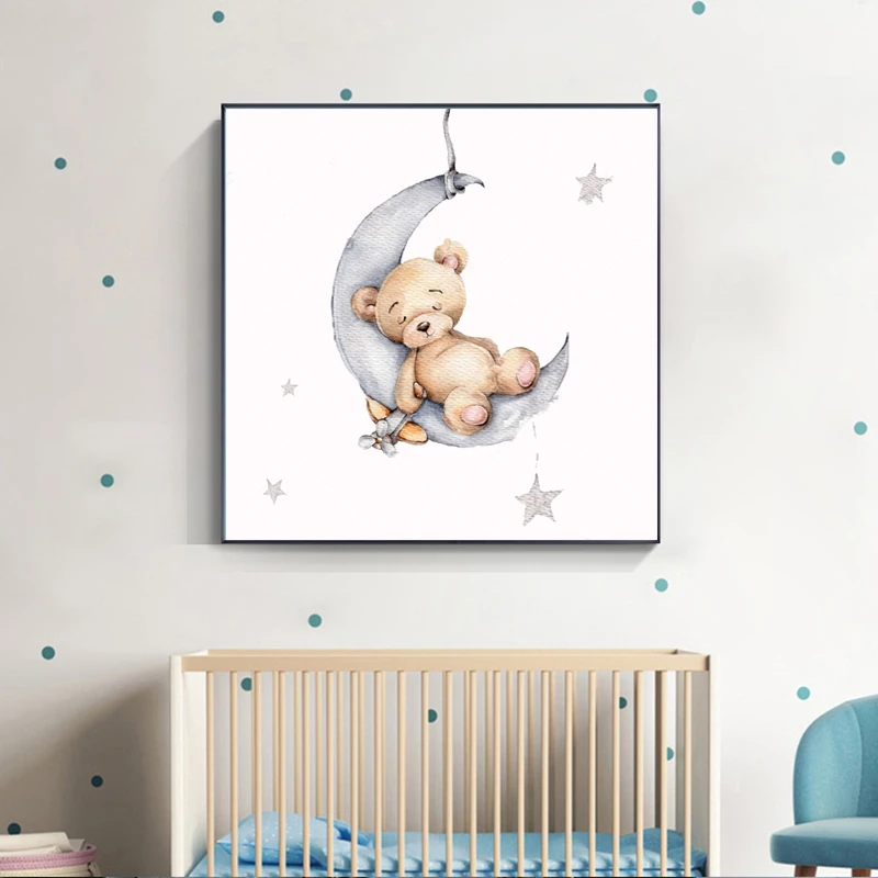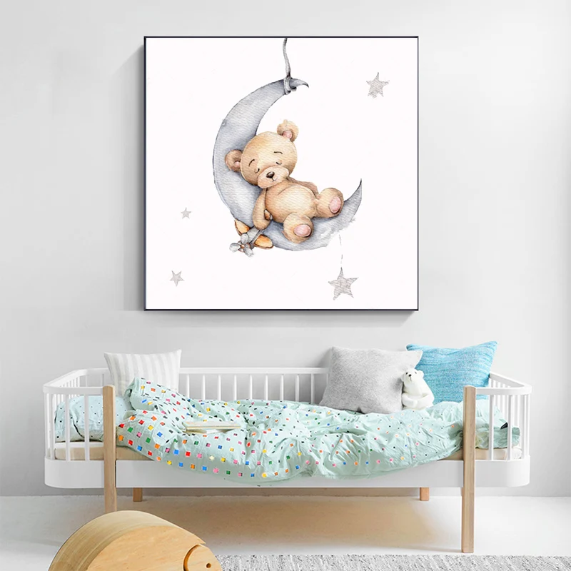 Мультфильм плакат милый медведь картина стены искусства холст картина для детской комнаты украшения Плакаты и принты настенные картины без рамки, из-за причин стрельбы, существует небольшая разница в цвете между фактическим изображением и изображением продавца, но это не влияет на красоту
