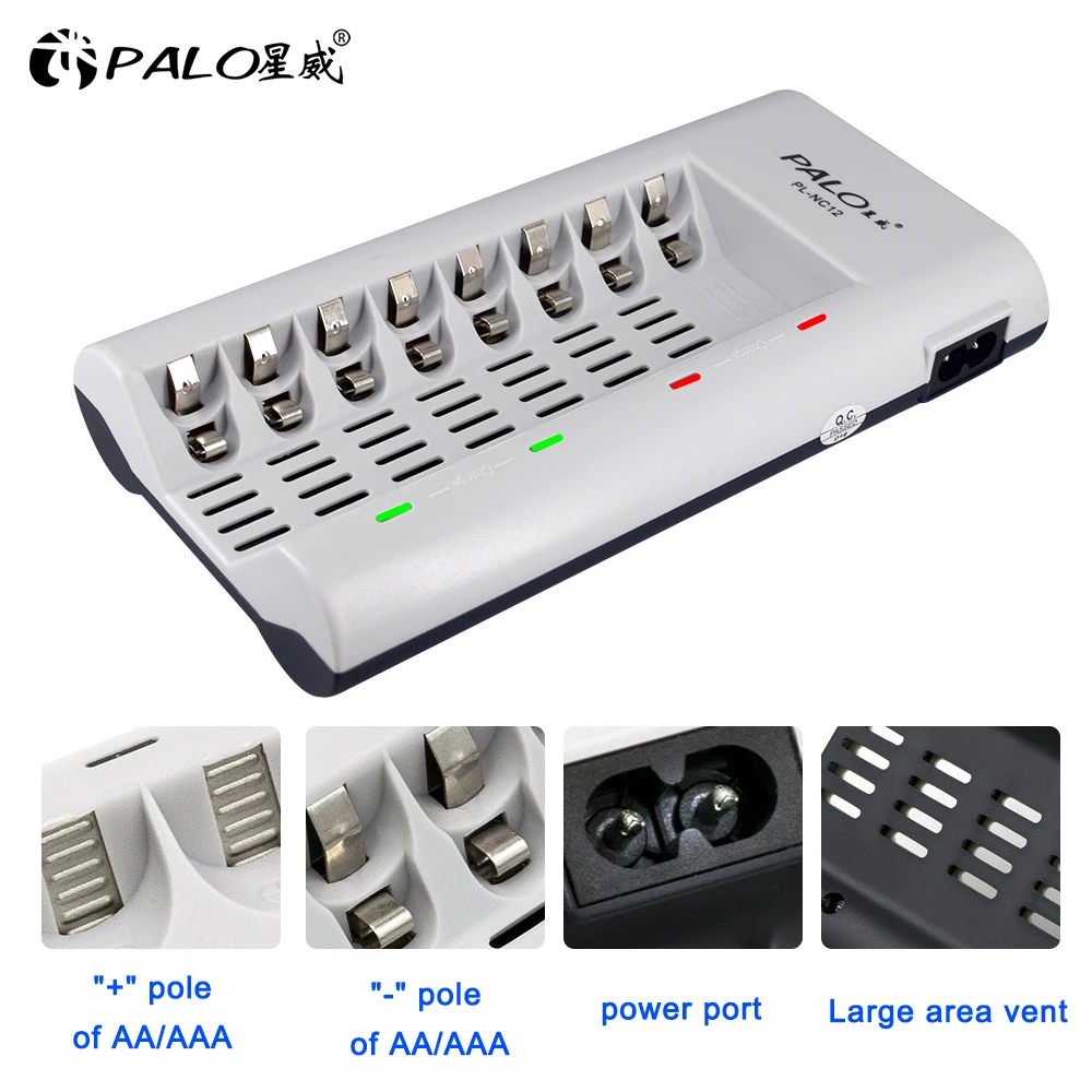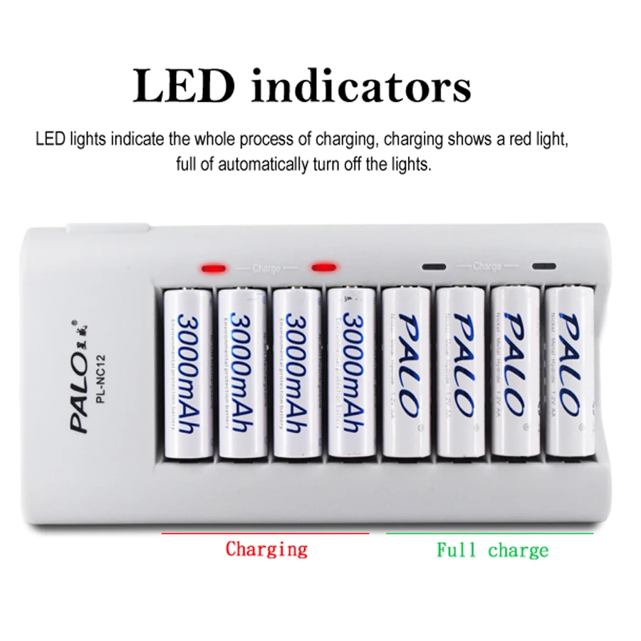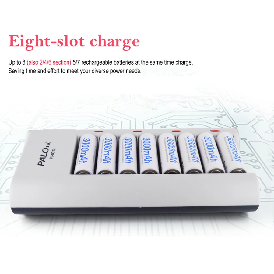 Зарядное устройство PALO с 8 слотами для аккумуляторов 1,2 в AA AAA Ni-MH Ni-Cd