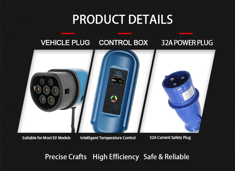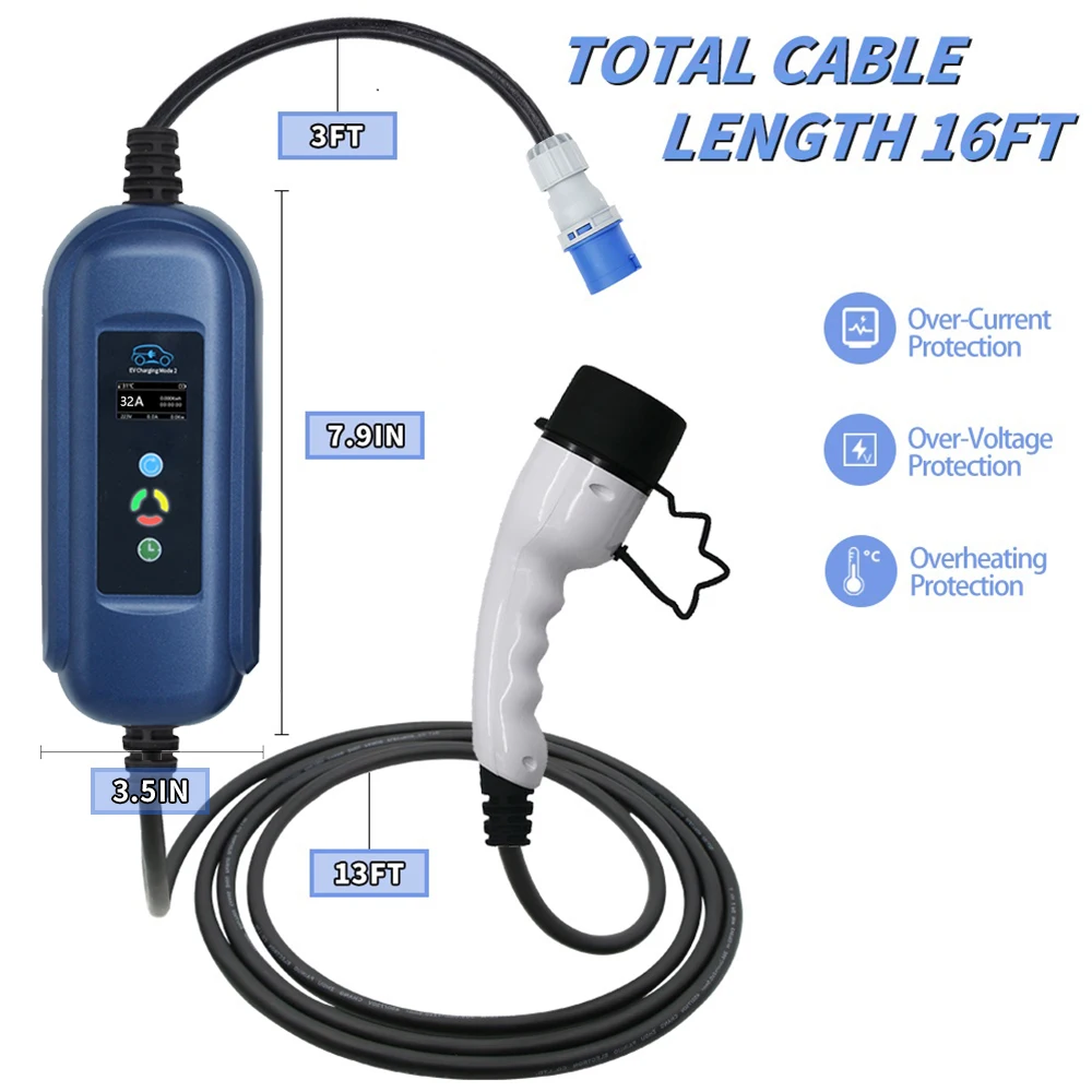 Портативный адаптер зарядного устройства для электромобилей Тип 2 3...