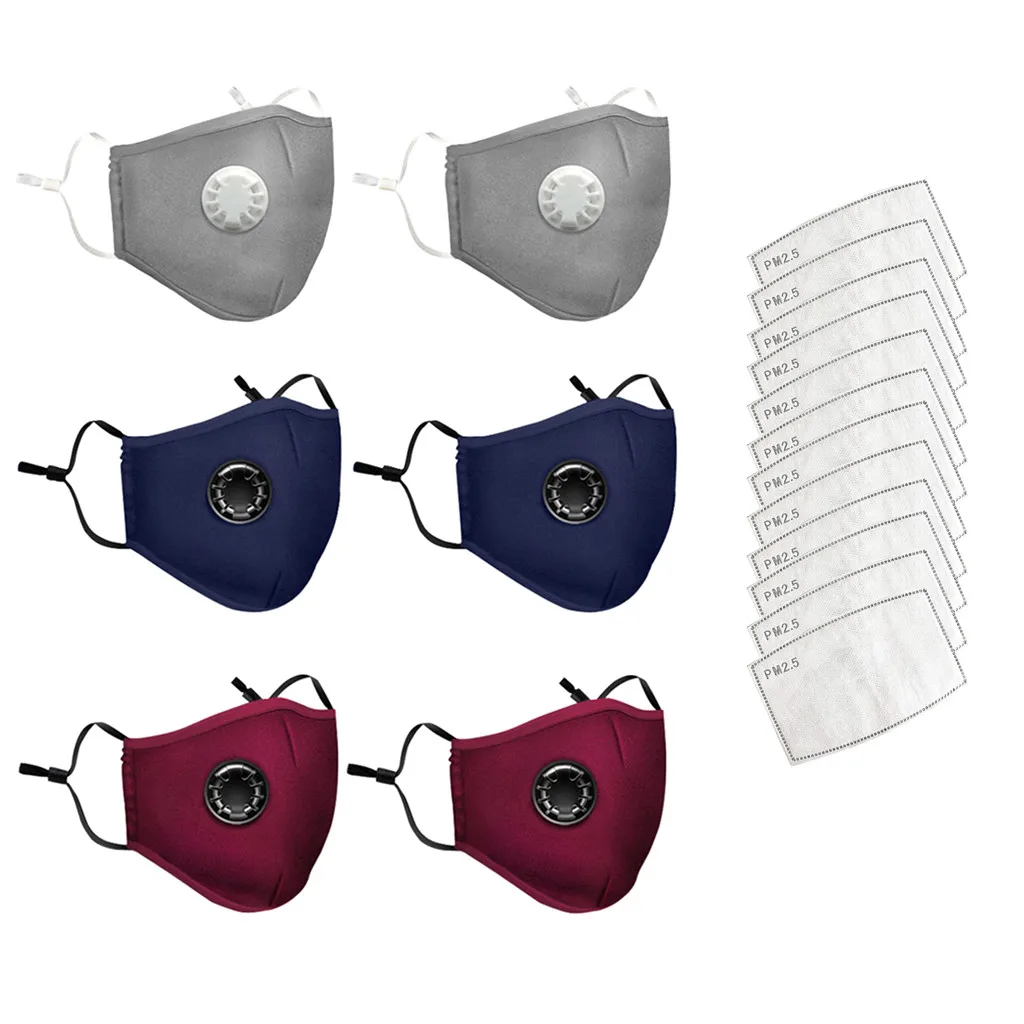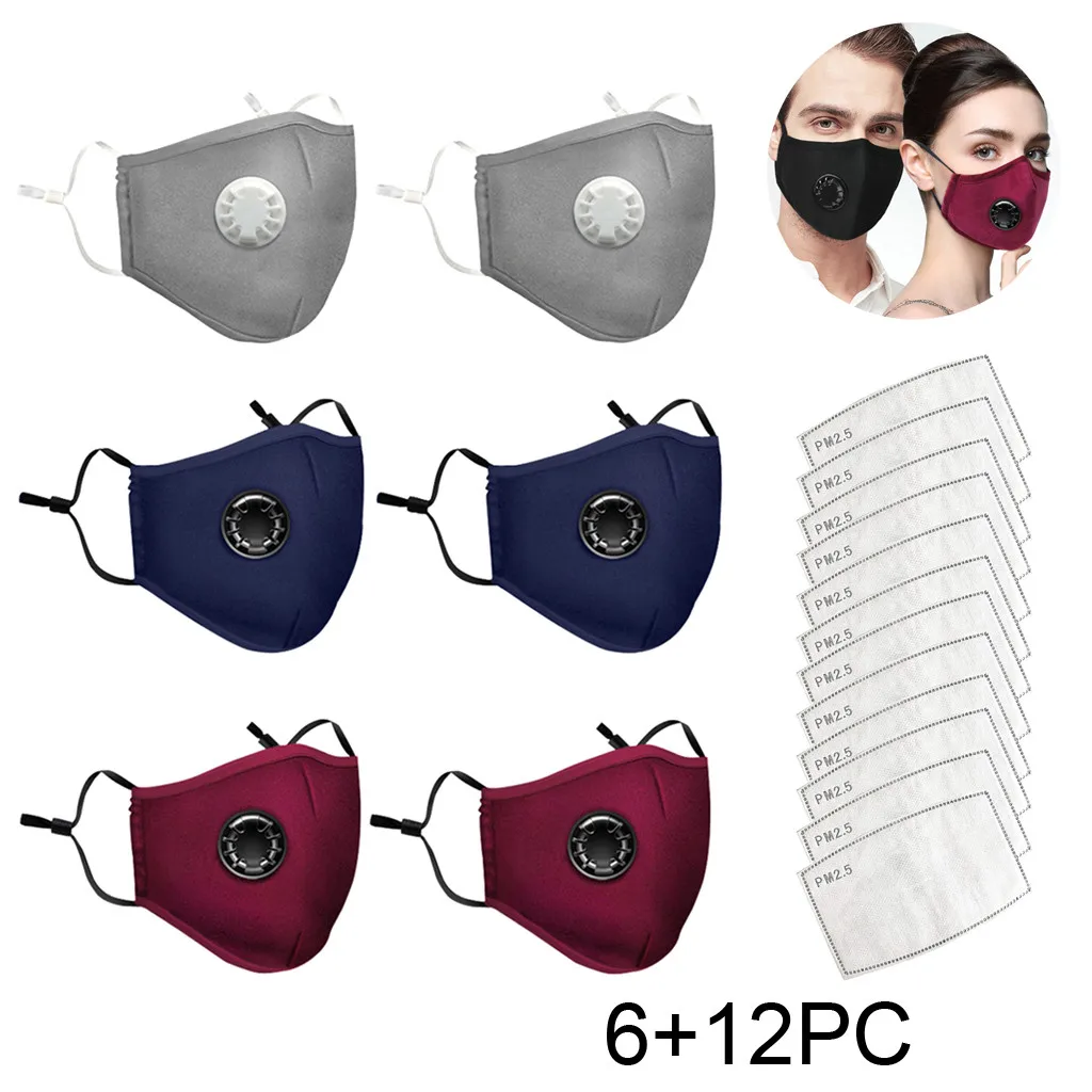 Маска для лица хлопковая с 12 фильтрами, многоразовая моющаяся маска с активированным углем, 6 шт.