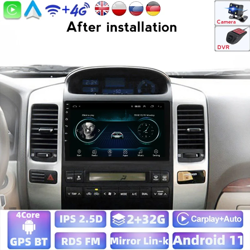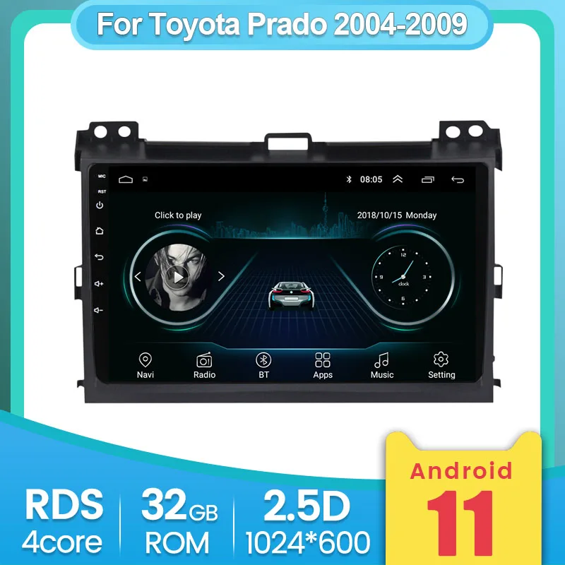 2 ГБ + 32 ГБ Android для TOYOTA PRADO Land Cruiser 120 2004-2009 автомобильное радио, мультимедийный видеоплеер, навигация GPS, 2 Din, поддержка камеры