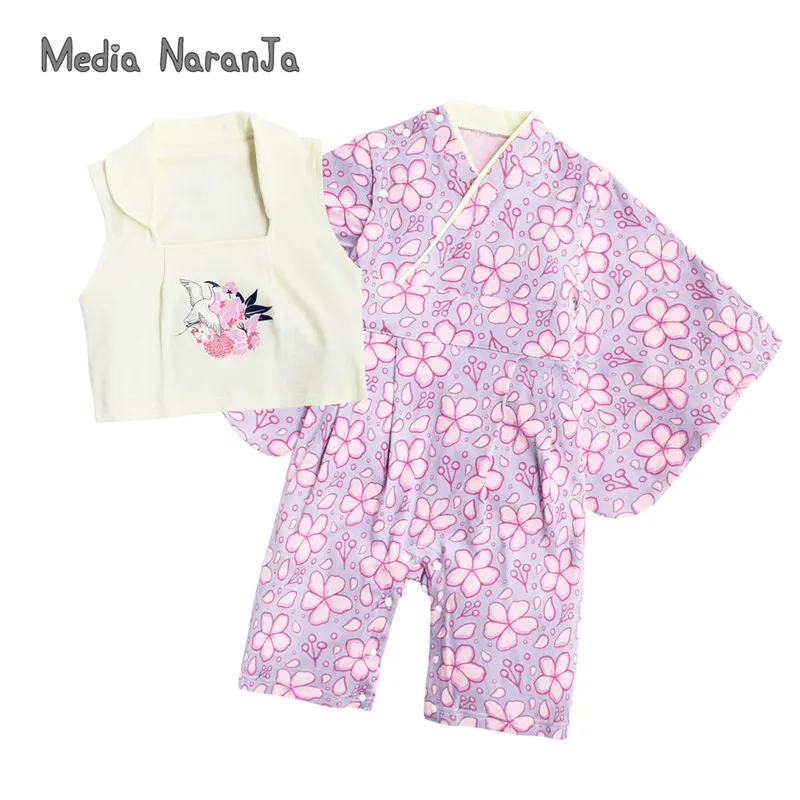 Костюм для девочек осенне-зимний, кимоно + жилет