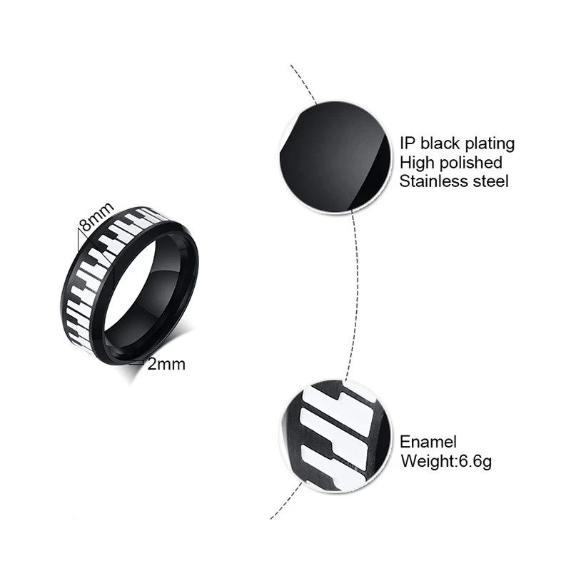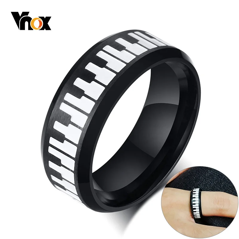 Vnox стильный фортепиано Ele мужские ts обручальные кольца для мужчин черный нержавеющая сталь скошенный полированный край удобная посадка мужские ювелирные изделия