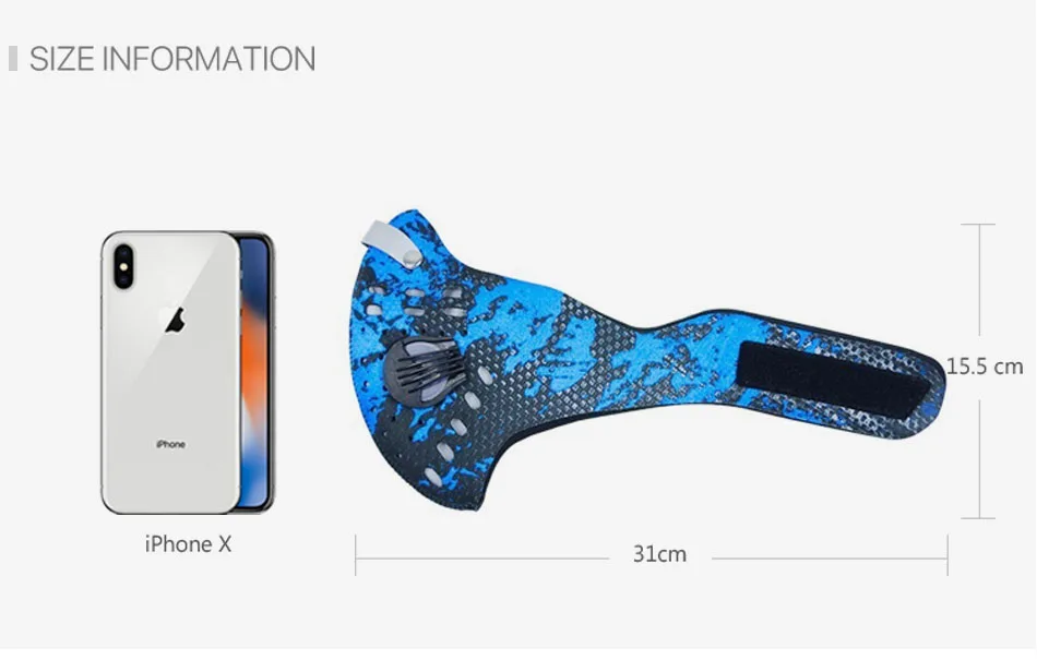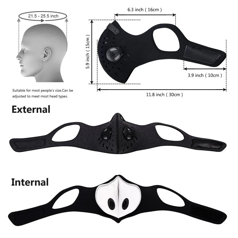 Маска для тренировок с активированным углем и фильтром, ветрозащитн...