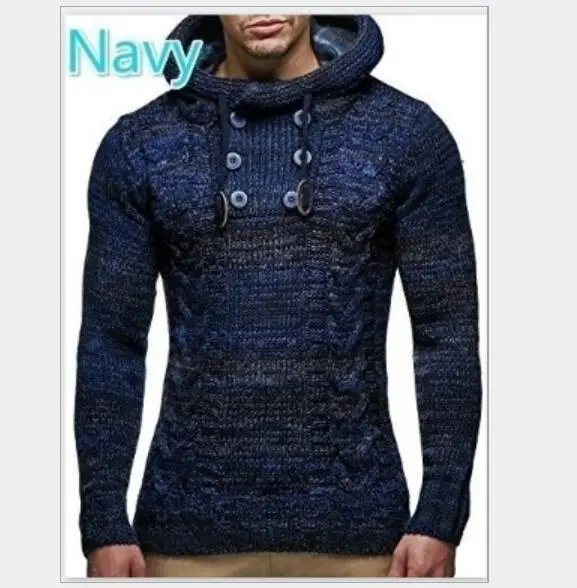 Мужской свитер, осенне-зимний повседневный мужской облегающий свитер ручной вязки с высоким круглым вырезом, рубашка с длинными рукавами