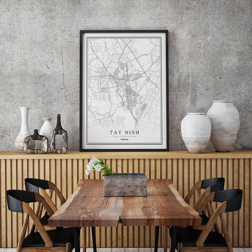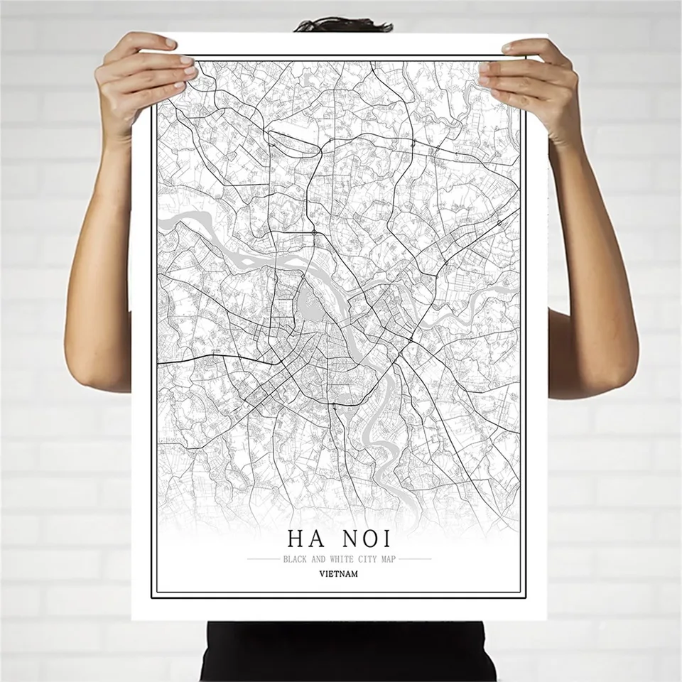 Вьетнамская черно-белая карта города, плакат, Скандинавская гостина...