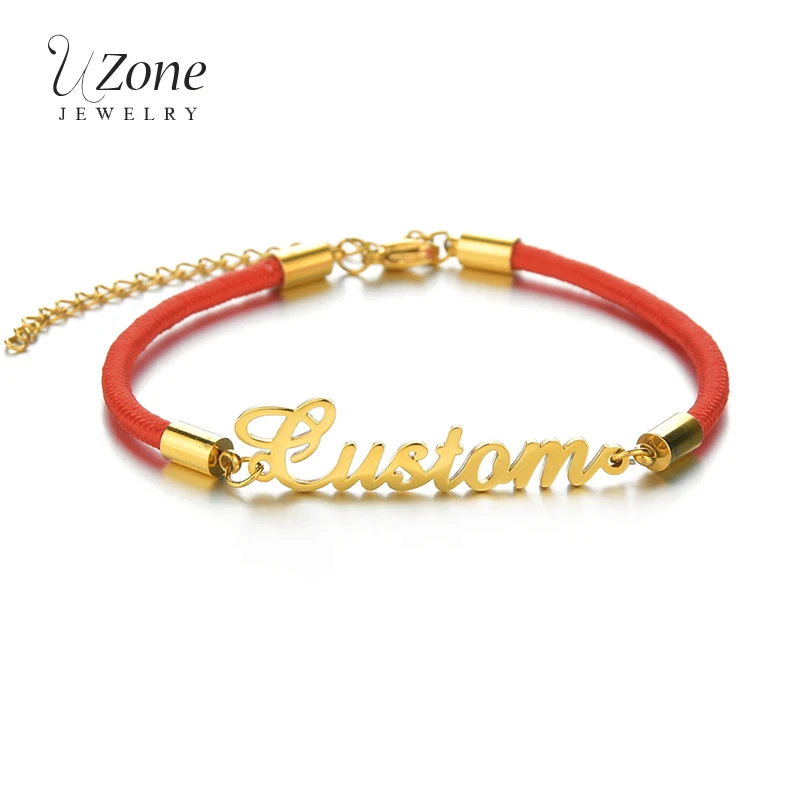 UZone персонализированный именной браслет регулируемый браслет из нержавеющей стали с надписью черный красный веревочный браслет для женщин и мужчин подарок