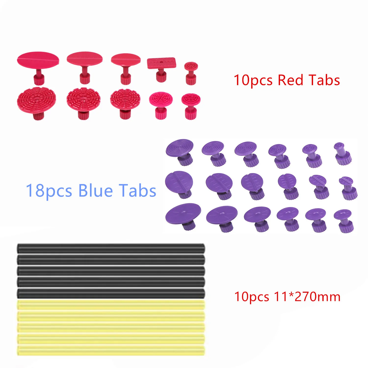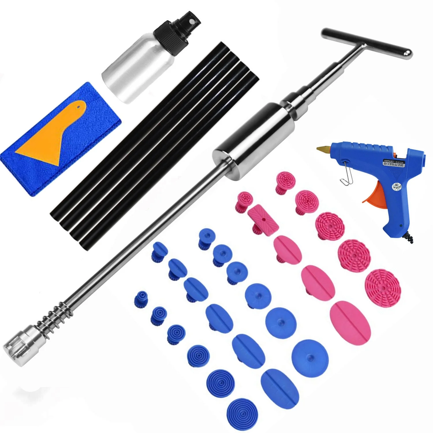 Набор инструментов для беспокрасочного удаления вмятин в автомобиле, комплект для ремонта вмятин, съемник, скользящий обратный молоток, клейкие вкладки, присоски для градового повреждения, без покраски