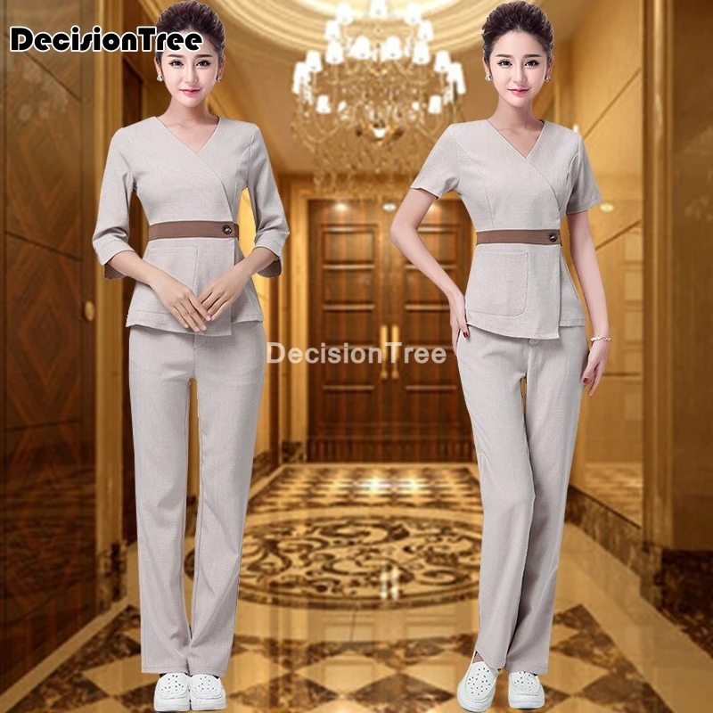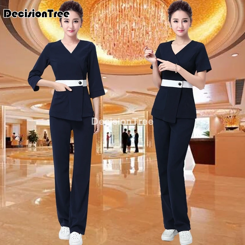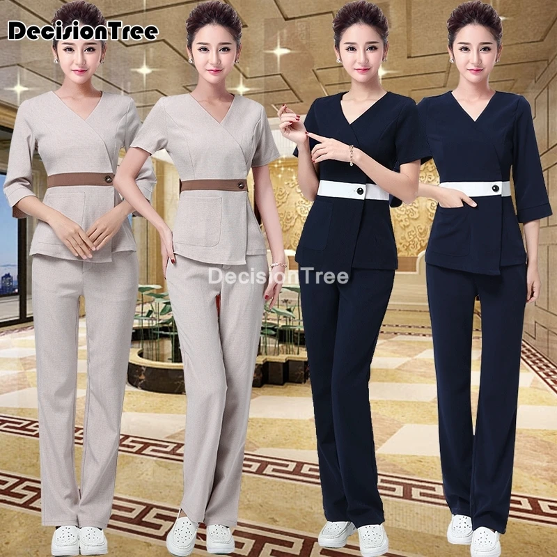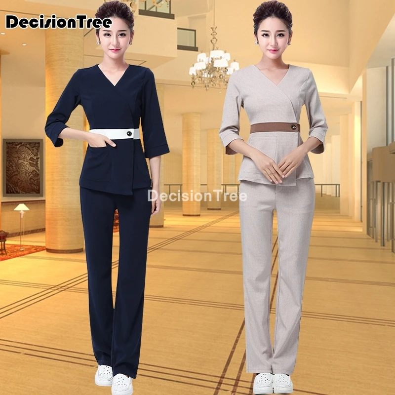 2022 Женская рабочая одежда для салона красоты, рабочая одежда для приема в отеле, рабочая одежда для сауны, униформа для ванной