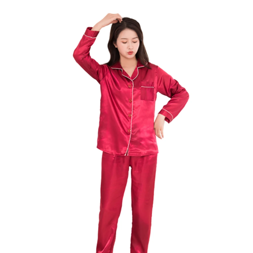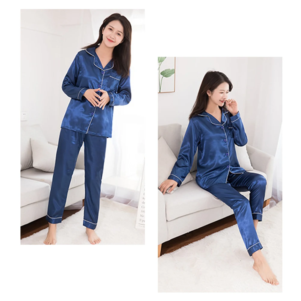 Женский Шелковый Атласный пижамный комплект, однотонная Пижама для пар с длинным рукавом, костюм для сна, Размер 2XL, Лидер продаж
