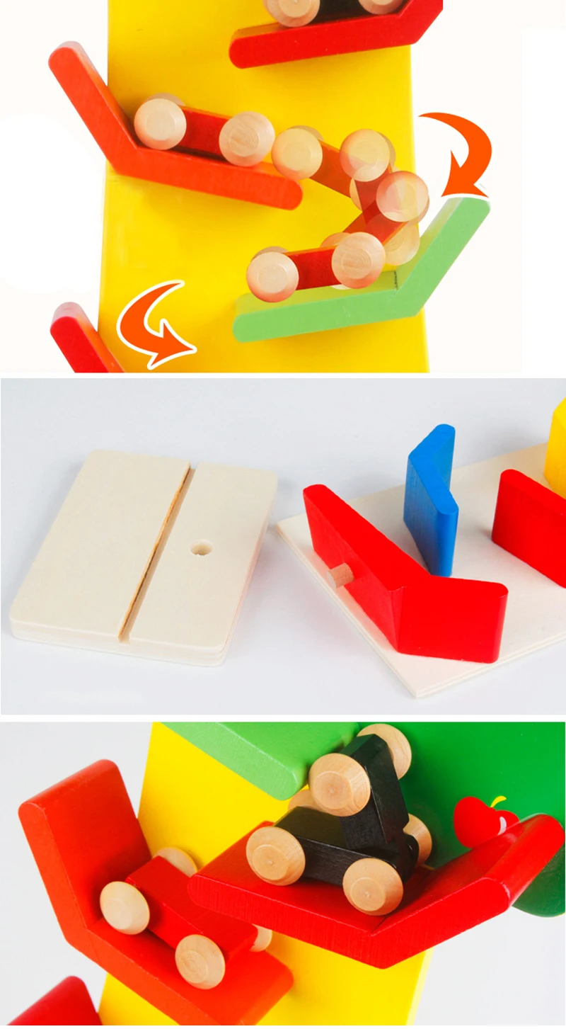 Детская деревянная игрушка Монтессори, обучающая деревянная машина, гоночная рампа, трек, набор, башня, слот, игрушка для детей 2 + лет, подарок для мальчика и девочки